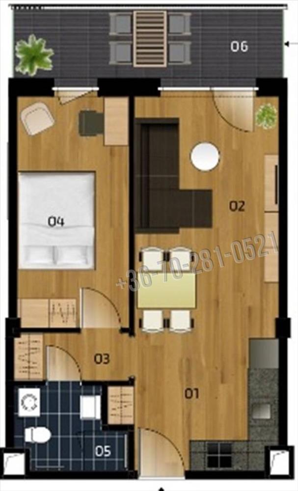 •Kerthelyiséggel rendelkező lakások, erkélyes lakások és a penthouse szinten tágas tetőteraszos lakások