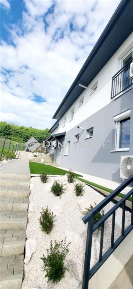 Eladó modern lakóparki 95 m2-es teraszos lakás, belső közös játszótérrel! ÚJ építésű lakások, 10 % önerővel foglalható! Vác Rózsadombján, örökpanorámás, hangulatos, zárt lakóparki környezetben, modern, minőségi alapanyagokból épülő, 95 nm-es, nappali + 3 hálós, kertkapcsolatos lakás eladó! a lakóparkban 6 lakás épül. a lakások energetikai besorolása b, rezsi védetten fenntarthatóak. Az ingatlanok műszaki jellemzői:- porotherm 30 nf falazat, - 12 cm grafitos szigetelés, - 35 cm kőzetgyapot szigetelés a födémen, - 3 rétegű üvegezésű, vasalt profilú műanyag nyílászárók, - 4 db. Hőszivattyús, inverteres klíma, - Padló fűtés, amely korszerű kondenzációs kazánról üzemel, - Választható burkolatok, csapok és szaniterek, - Lemezes tetőfedés, - 25-100 nm-es, saját használatú, körbekerített kertkapcsolattal, , - Térkövezett gépkocsi beálló az udvarban, - a közös telekrészen korszerű játszótér és közösségi sütőhely kerül kialakításra. Buszmegálló 3 perces, bevásárlási lehetőség 5 perces sétára található.
