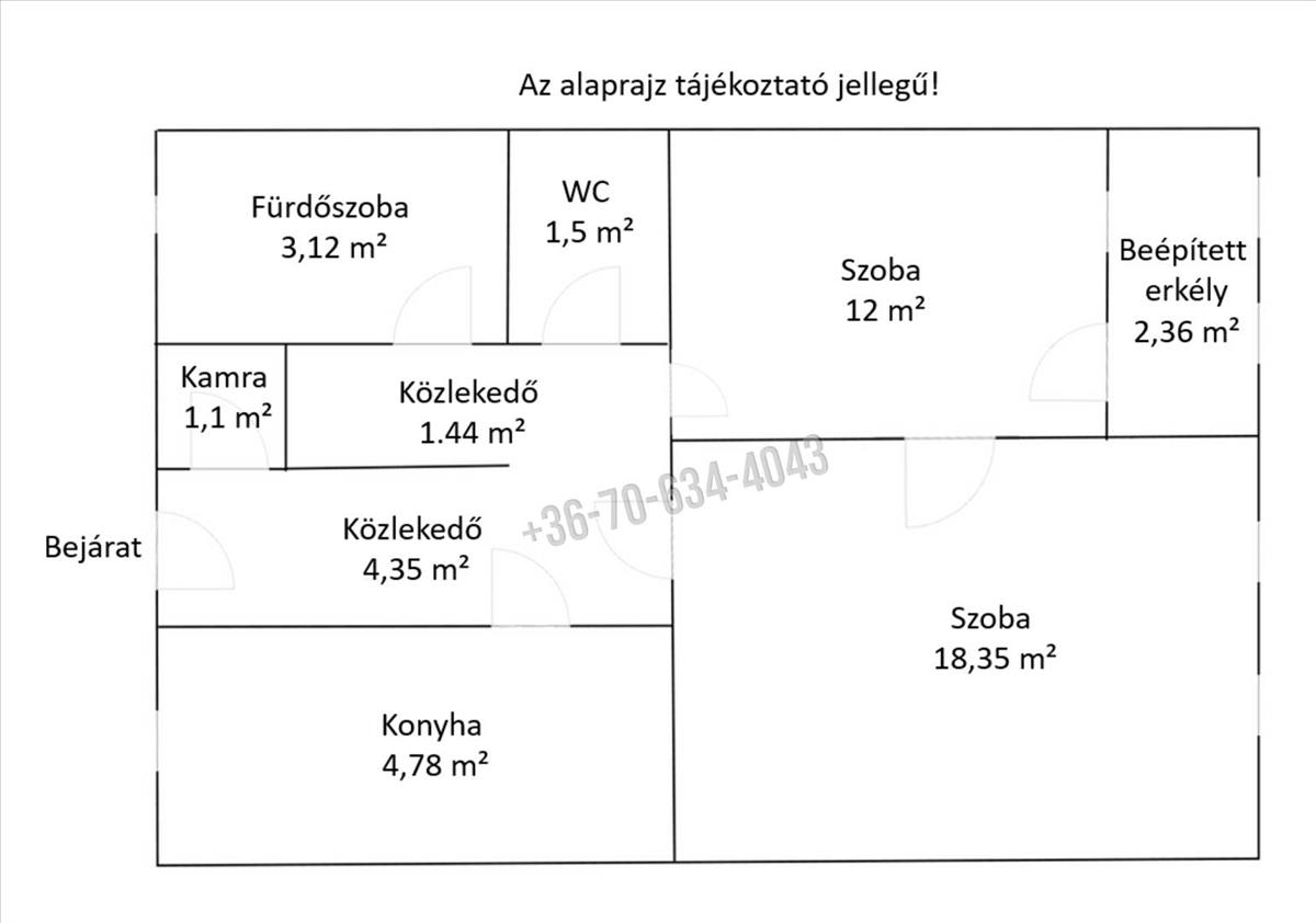 A lakásban található nappali, hálószoba, konyha, kamra, közlekedő, kádas fürdőszoba és a wc külön helyiségben. Az erkély beépítésre került.