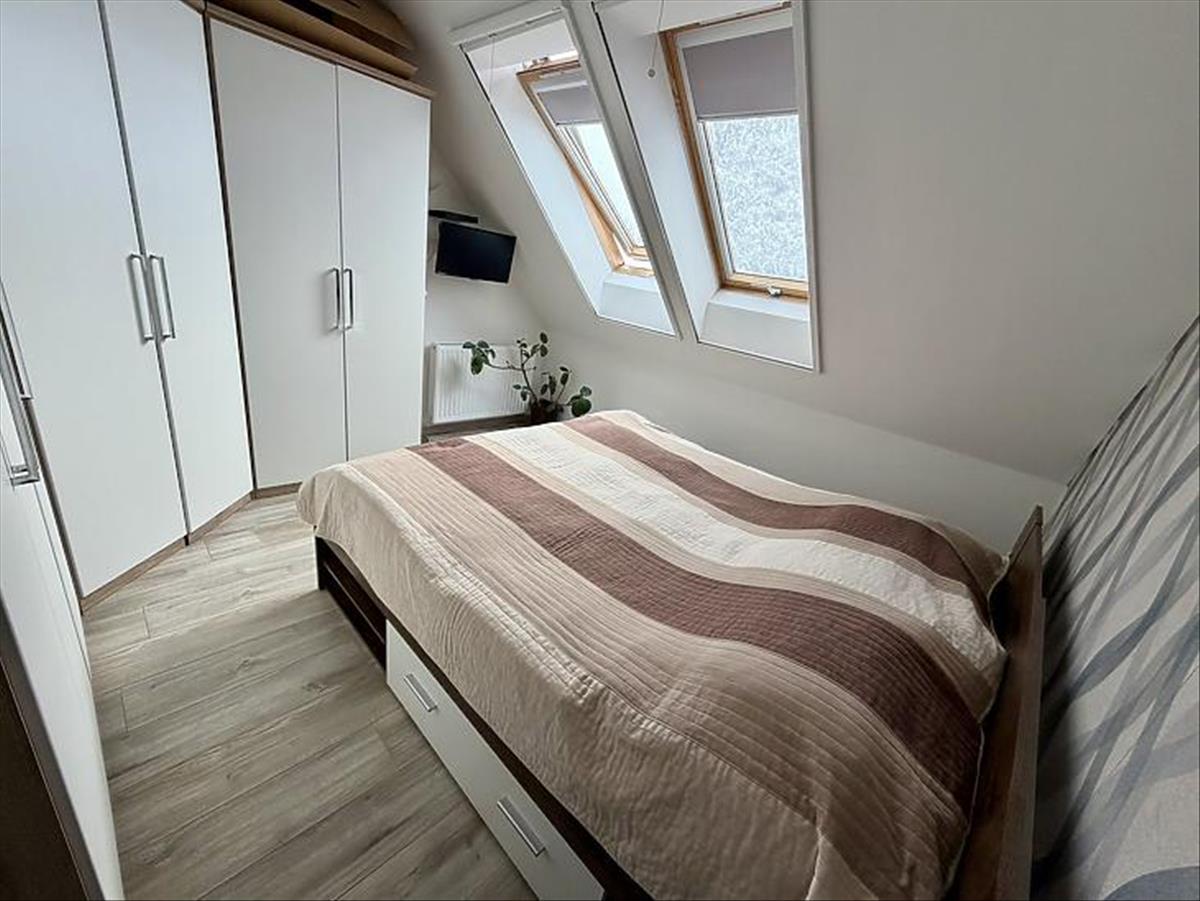 Az emeleti szinten három külön nyíló szoba, egy WC-vel ellátott fürdőszoba, valamint egy padlástér található, amely kiválóan alkalmas tárolásra. a lakás műanyag nyílászárókkal rendelkezik, minden ablak redőnnyel és szúnyoghálóval felszerelt, a fűtést kondenzációs gázkazán biztosítja, emellett padlófűtés és két darab hűtő-fűtő klíma gondoskodik a komfortérzetről mindkét szinten. Az épület kiváló hang- és hőszigeteléssel rendelkezik (Silka falazat, 12 cm szigetelés), a lakáshoz pedig saját parkolóhely is tartozik. a vételár részét képezik a szülői hálószobába egyedileg tervezett gardróbszekrény, valamint a teljes gépesítéssel ellátott konyhabútor és a fürdőszobabútorok is.