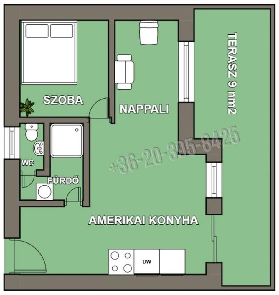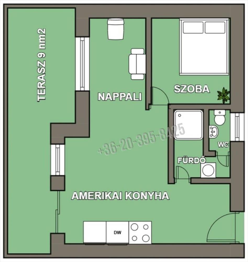 o 2 szoba + amerikai konyha 45. 46 Nm + 9 nm -es terasz és fedetlen autó beállási lehetőséggel – 58. 2 M Ft