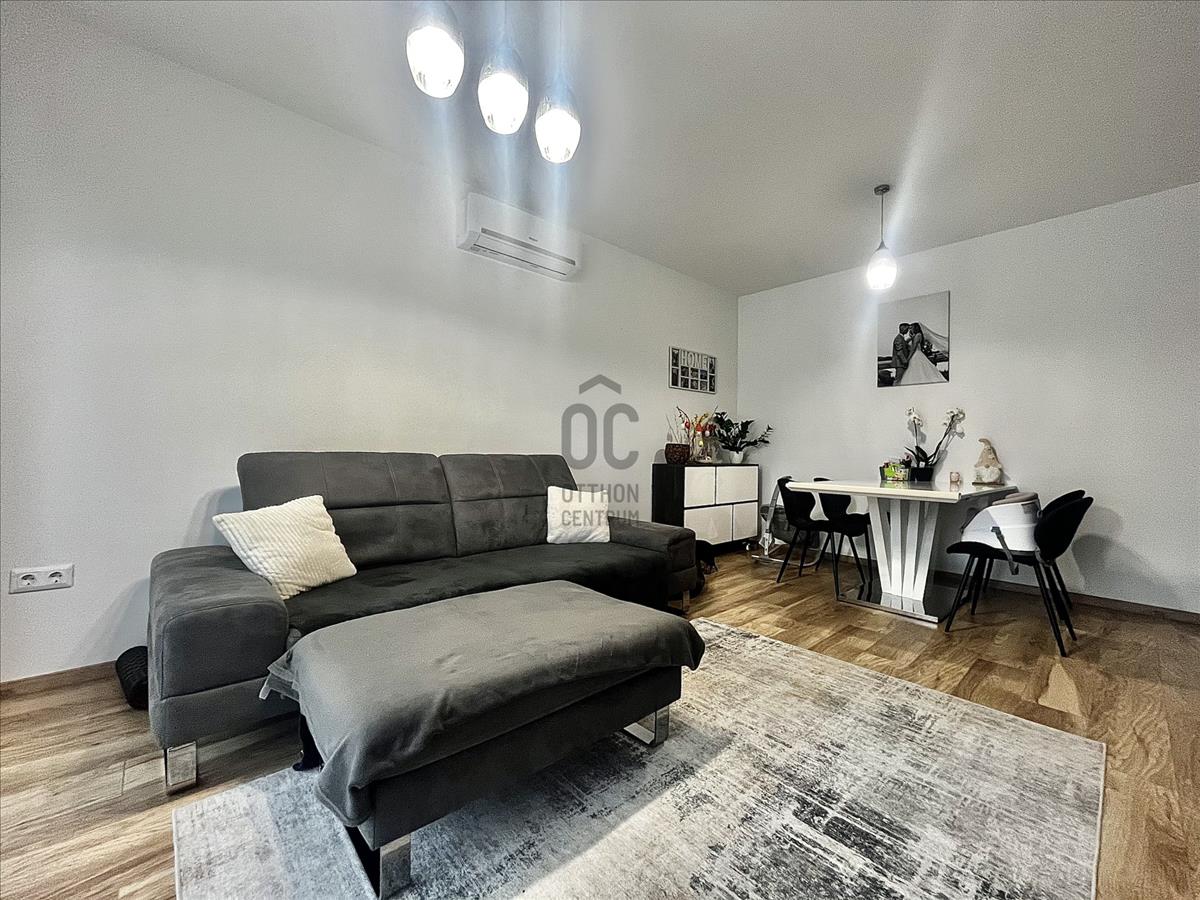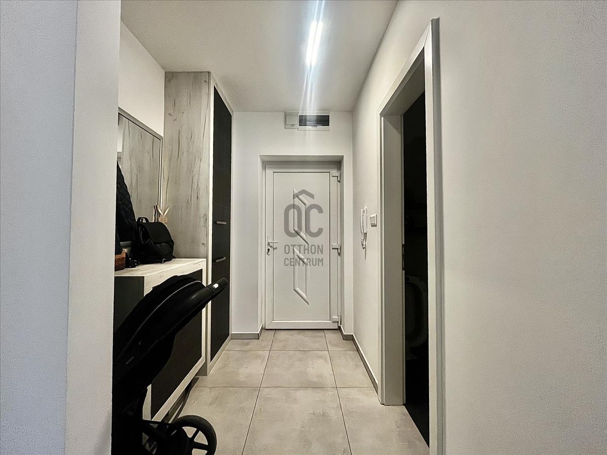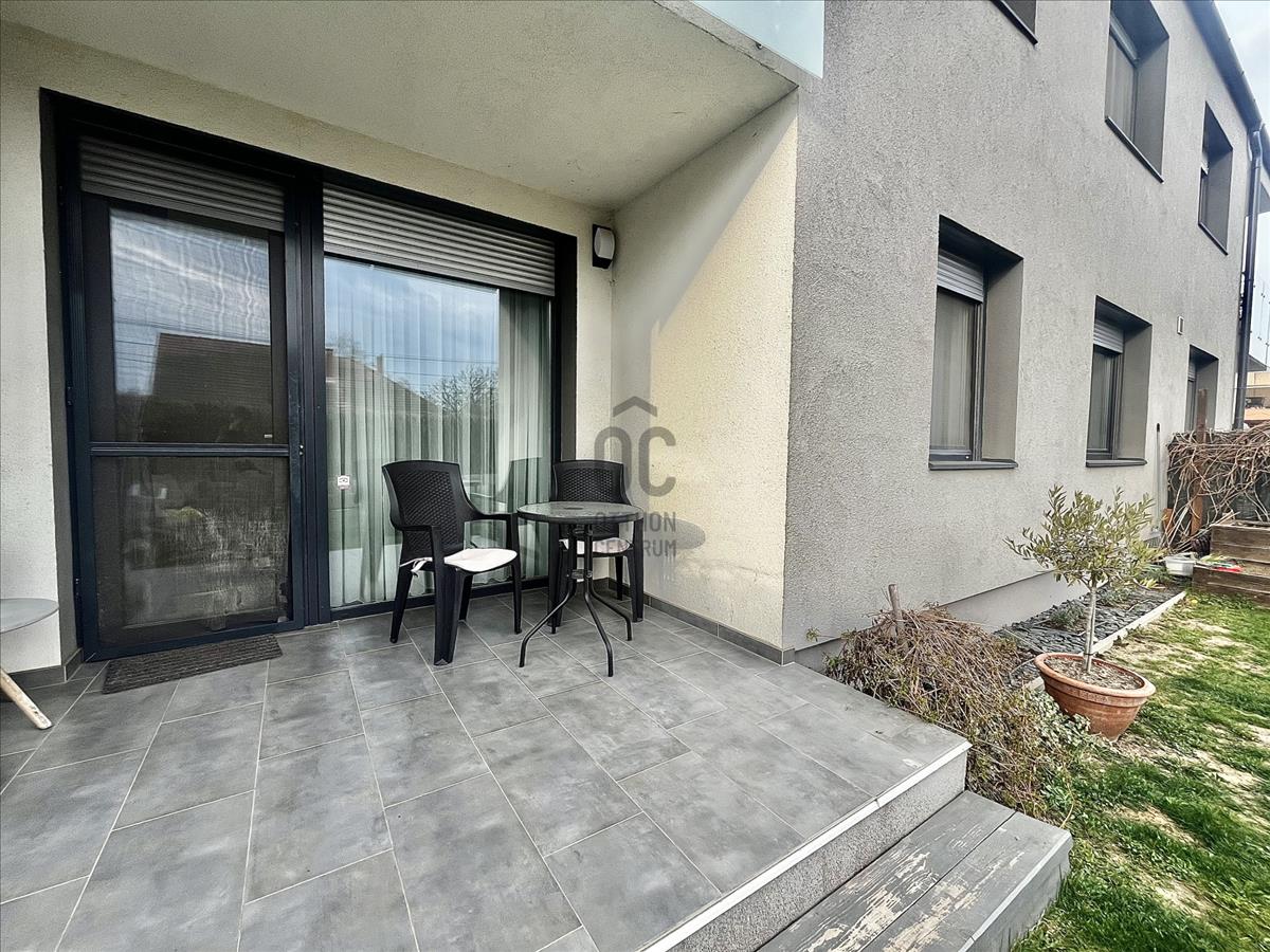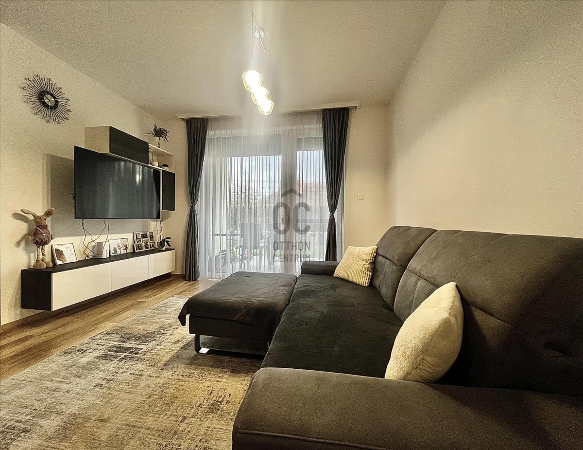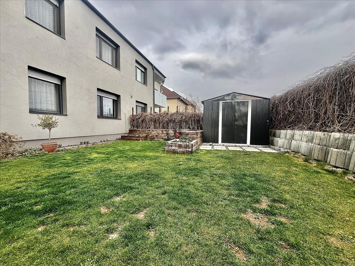 2017-Es építésű tégla társasház földszintjén található az ingatlan, amely maga a nyugalom szigete. Belső színvilága modern, de mégis letisztult belső megjelenést kölcsönöz, magas műszaki paraméterekkel. a legtöbb bútor az ingatlanban beépített, tehát a vételár részét képezik. Műanyag nyílászárókkal, padlófűtéssel, Saunier Duval kazánnal ellátott lakásról van szó, amelynek saját kertkapcsolata is van 72 négyzetméteren. Az udvar füvesített, teljes alapterületet tekintve vakondhálóval ellátott, automata öntözőrendszerrel. a tárolás is megoldott az udvaron egy lemeztárolóval, ahova a grillsütő, fűnyíró kényelmesen elfér.
