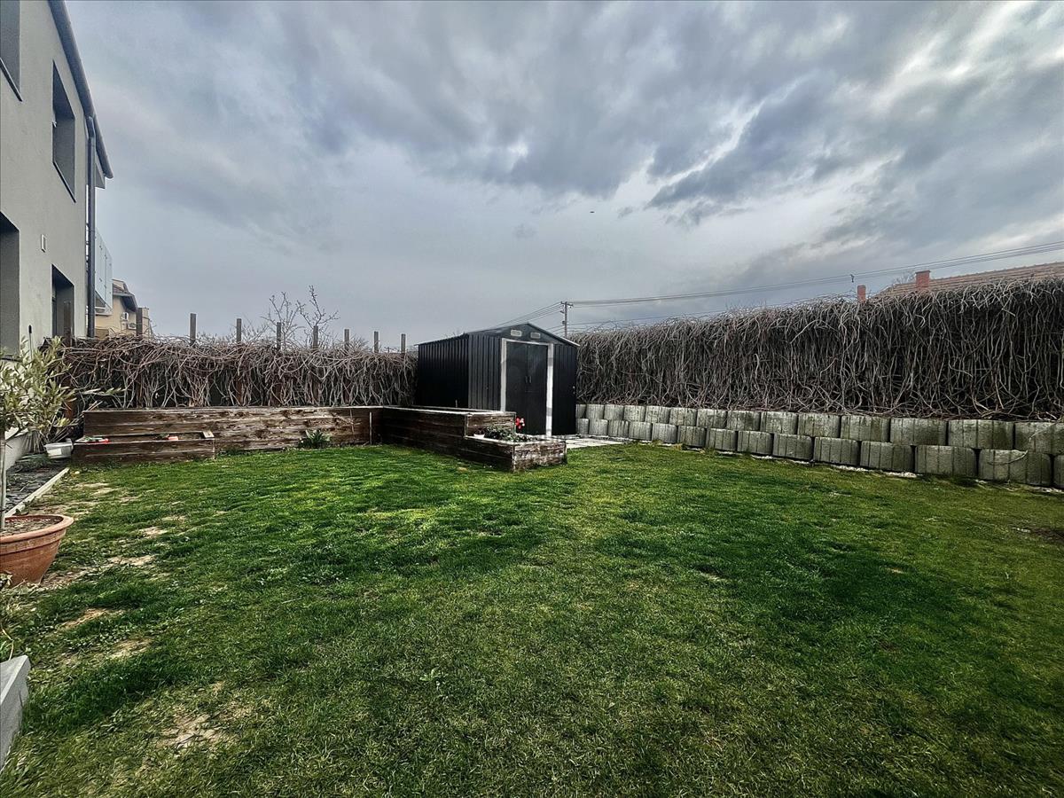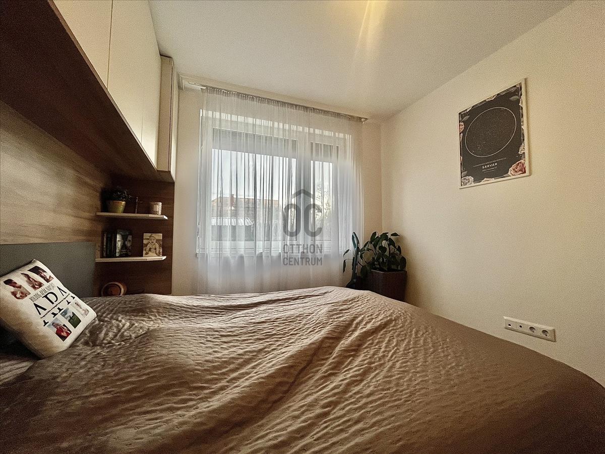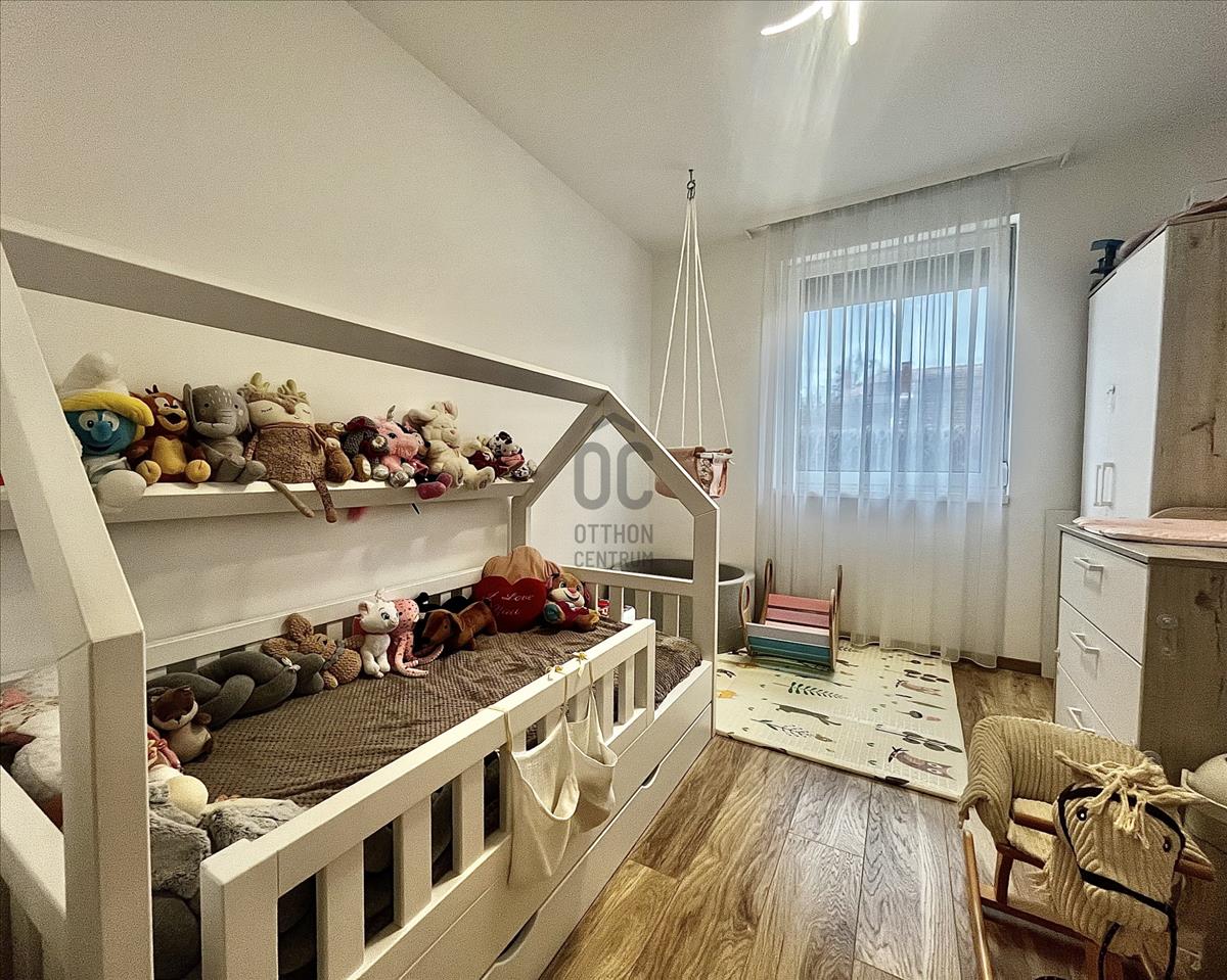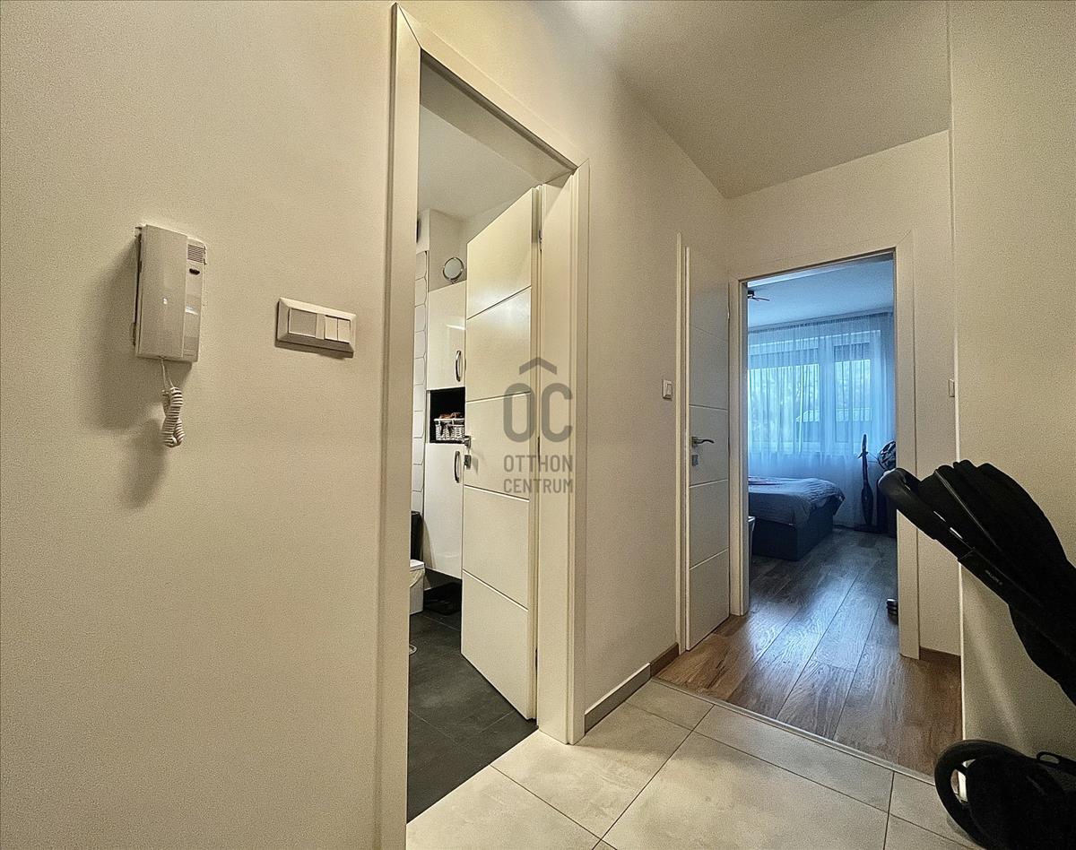 2017-Es építésű tégla társasház földszintjén található az ingatlan, amely maga a nyugalom szigete. Belső színvilága modern, de mégis letisztult belső megjelenést kölcsönöz, magas műszaki paraméterekkel. a legtöbb bútor az ingatlanban beépített, tehát a vételár részét képezik. Műanyag nyílászárókkal, padlófűtéssel, Saunier Duval kazánnal ellátott lakásról van szó, amelynek saját kertkapcsolata is van 72 négyzetméteren. Az udvar füvesített, teljes alapterületet tekintve vakondhálóval ellátott, automata öntözőrendszerrel. a tárolás is megoldott az udvaron egy lemeztárolóval, ahova a grillsütő, fűnyíró kényelmesen elfér.