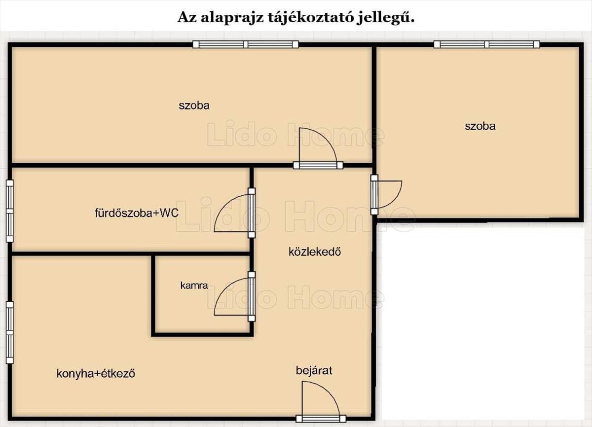 -2 különálló szoba, étkezős konyha, kamra