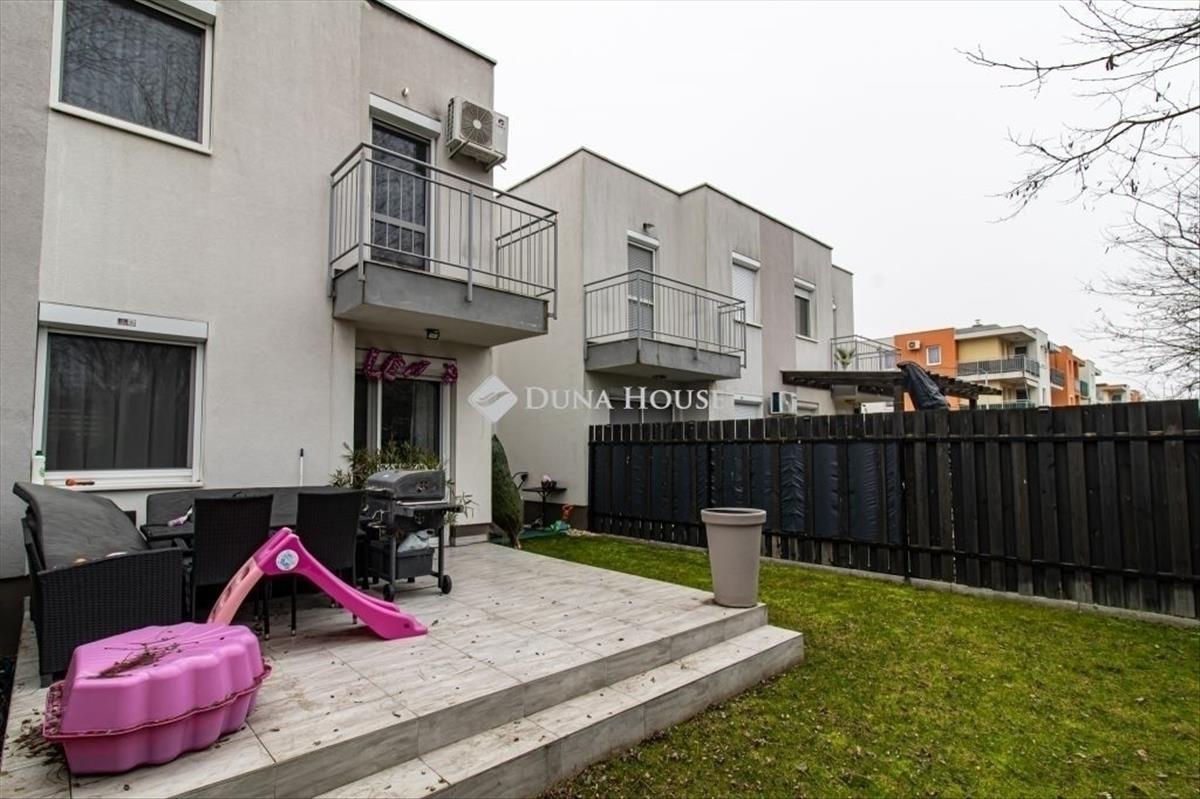 A kedves kis teraszt körülöleli a pici kert, mely mérete ellenére öntözőrendszerrel ellátott. Az emelet az intimitás tere: itt található három és fél világos, jól bútorozható szoba, amelyek tökéletesen alkalmasak hálószobának, gyerekszobának vagy dolgozószobának is. a sarokkádas fürdőszoba igazi feltöltődést kínál, melynek mérete tökéletes egy család számára. a lakás műszaki tartalma korszerű és időtálló: téglaépítésű ház, gázkazános fűtés, szintenként klíma, műanyag nyílászárók redőnnyel és szúnyoghálóval felszerelve.