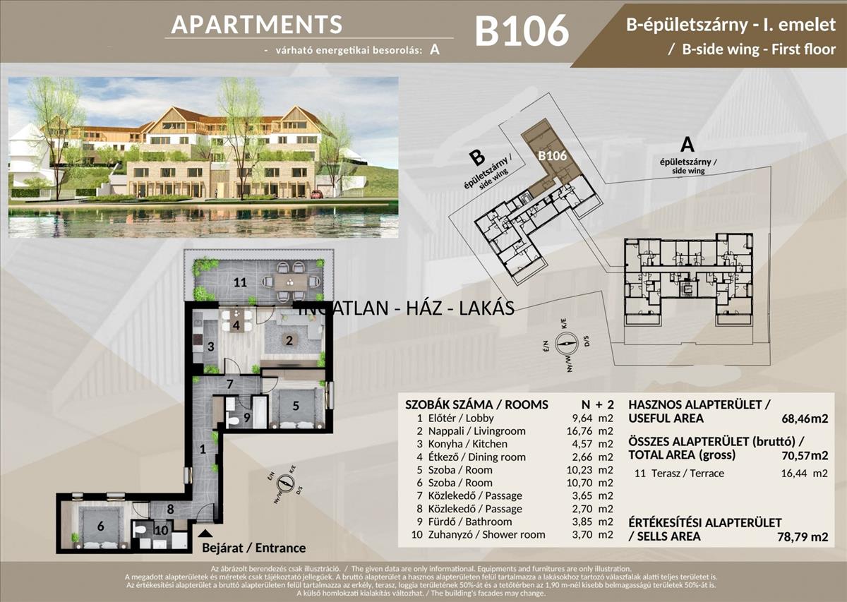 Szobaszámok lakásonként: 1-4 szoba, terasz 15 nm