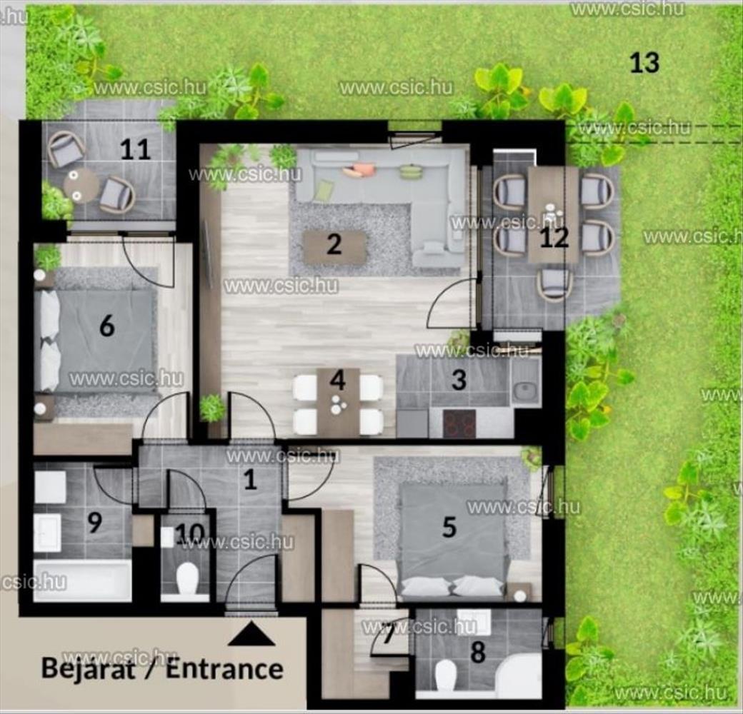 • Saját erkélyek, teraszok vagy kertkapcsolatos lakások