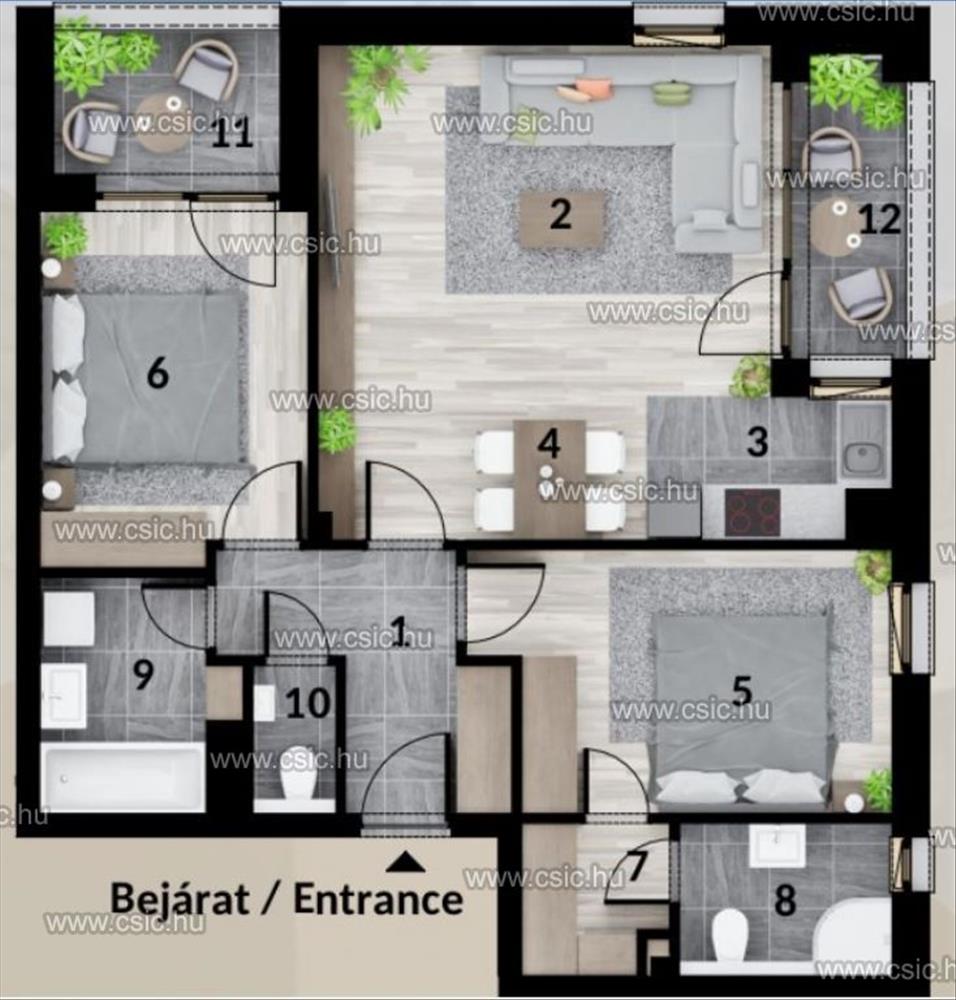 • Saját erkélyek, teraszok vagy kertkapcsolatos lakások