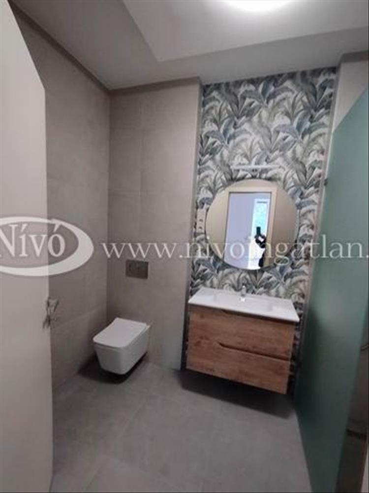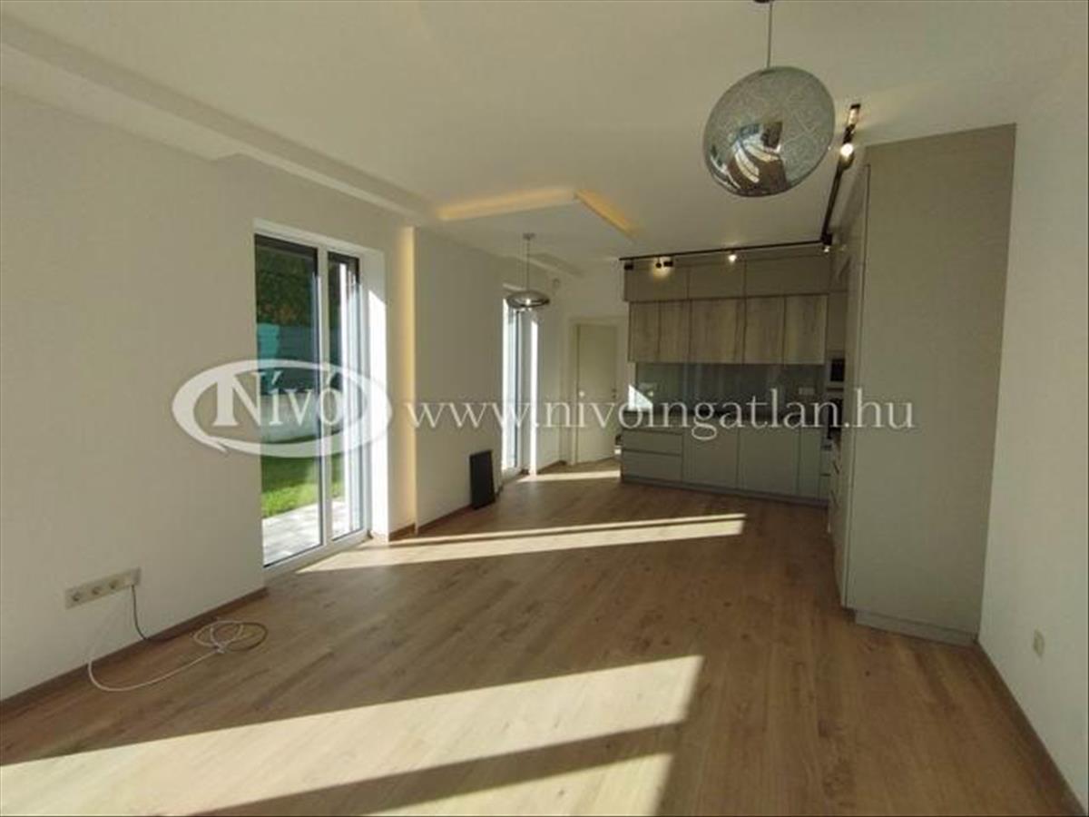 Az ingatlant tágas, világos terek jellemzik. a földszinten található egy nagy amerikai konyhás nappali-étkező rész, és praktikusan egy hálószobába gardróbbal és egy saját fürdőszobába is van ezen a szinten. Exkluzív gépesített konyha beépítésre került. a földszinten helyett kapott egy vendég wc kézmosóval illetve a gépészeti, mosókonyha/háztartási helyiség is. a nappaliból illetve a hálószobából egy 24, 36 m2-es burkolt teraszra illetve a kertbe lépünk ki. Az épület előtt egy saját felszíni parkoló és egy 18 m2-es elektromos Hörmann garázskapuval ellátott garázs is helyet kapott. Az ingatlant egy térkövezett útról tudjuk megközelíteni.