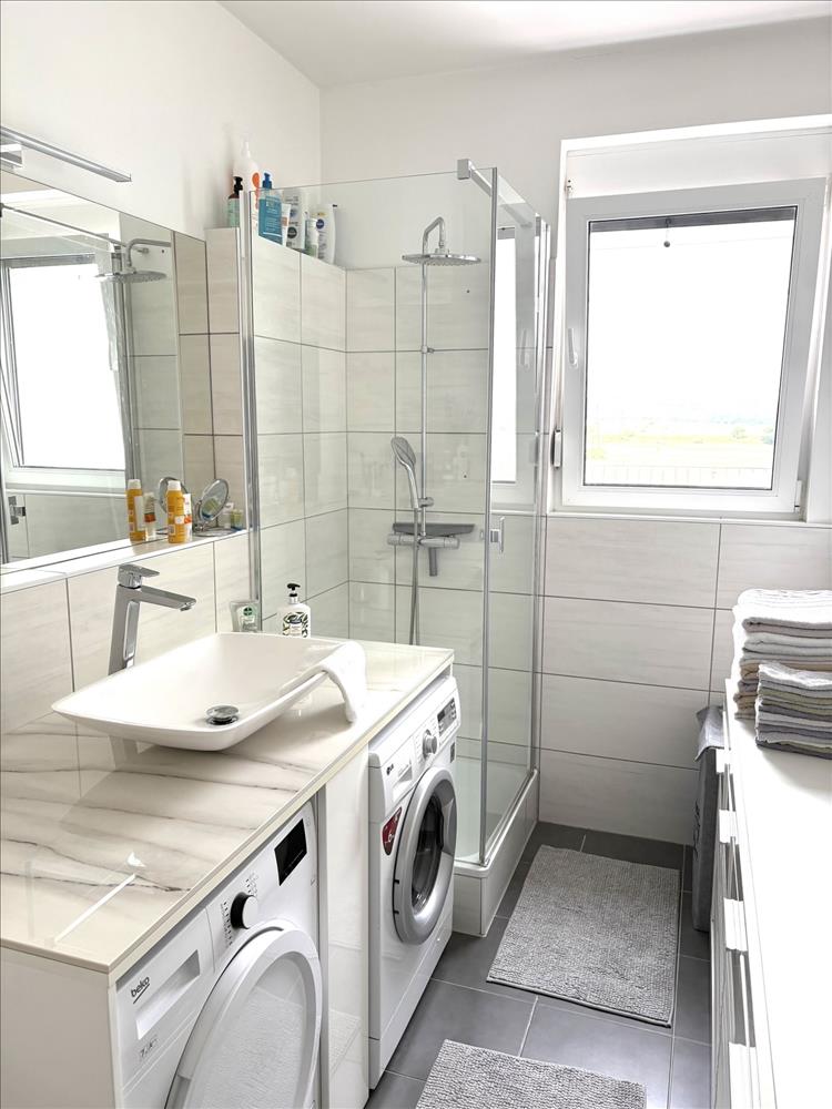 Három hálószoba, világos nappali, modern, teljesen gépesített konyha, elegáns fürdőszoba és külön zuhanyzós háztartási helyiség teremtenek kényelmes életteret.