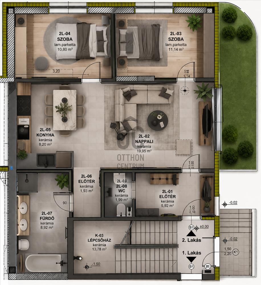 -Átgondolt, praktikus elrendezés, a lakás alapterülete 69, 85 nm