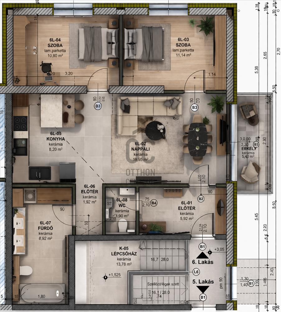 -Átgondolt, praktikus elrendezés, a lakás alapterülete 69, 85nm