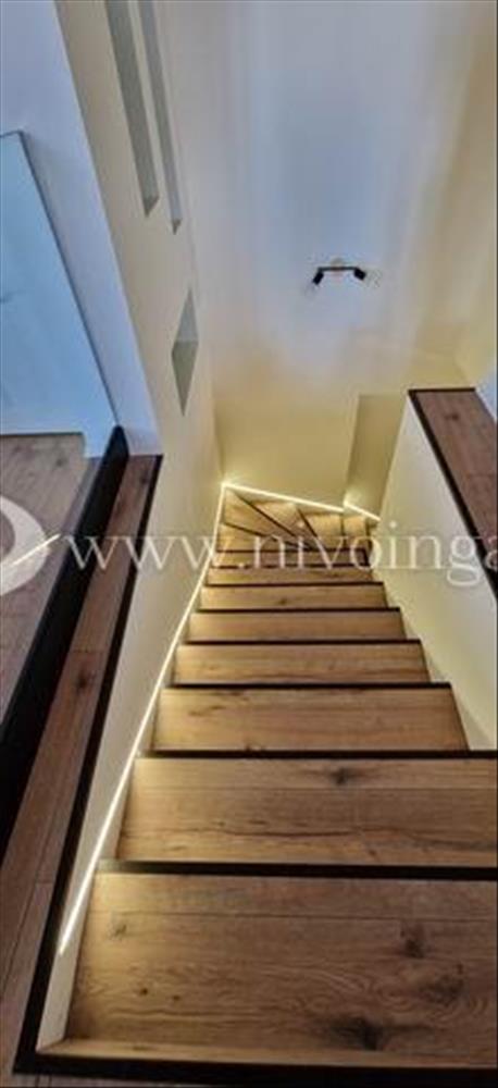 A főbejáraton, a saját lépcsőházba lépve egy kis kialakított előszobába lépünk, ahonnan tudjuk megközelíteni az emeletet és a szuterén szintet is. a szuterén szint kb. 30 m2, ahol található egy szoba, egy tároló illetve egy tusoló WC-vel. Az emelet 90 m2-es, áll egy nagy, világos nappali-konyha-étkezőből ahonnan egy Várpanorámás 13, 5 m2-es, hangulatos teraszra lépünk ki, egy hálószobából egy 5 m2-es erkéllyel, egy félszobából, egy nagy méretű zuhanyzós fürdőszobából WC-vel, egy kamrából.
