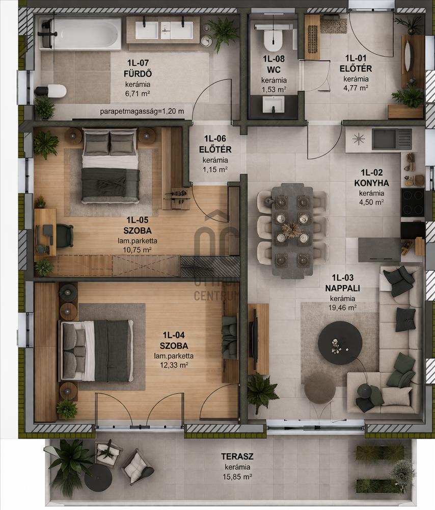 -Átgondolt, praktikus elrendezés, a lakás alapterülete 61, 20nm