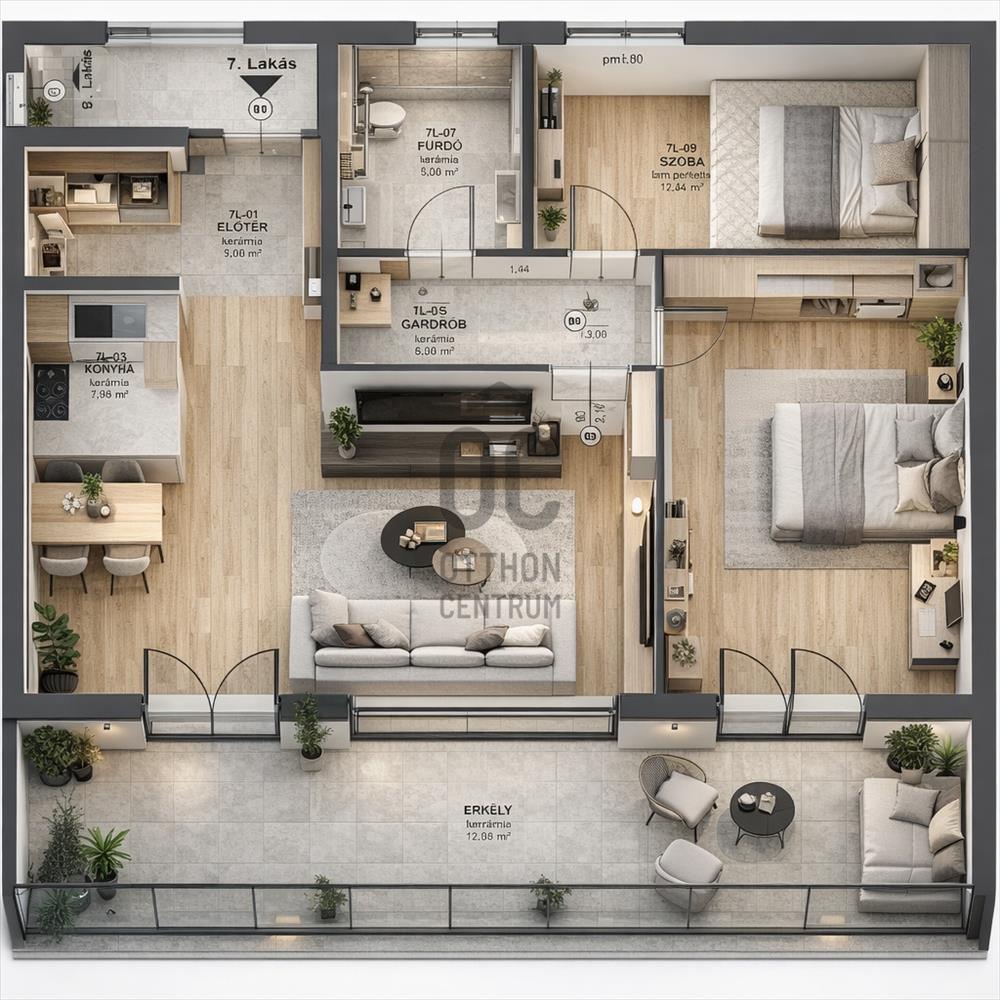 -Átgondolt, praktikus elrendezés, a lakás alapterülete 72, 15 nm