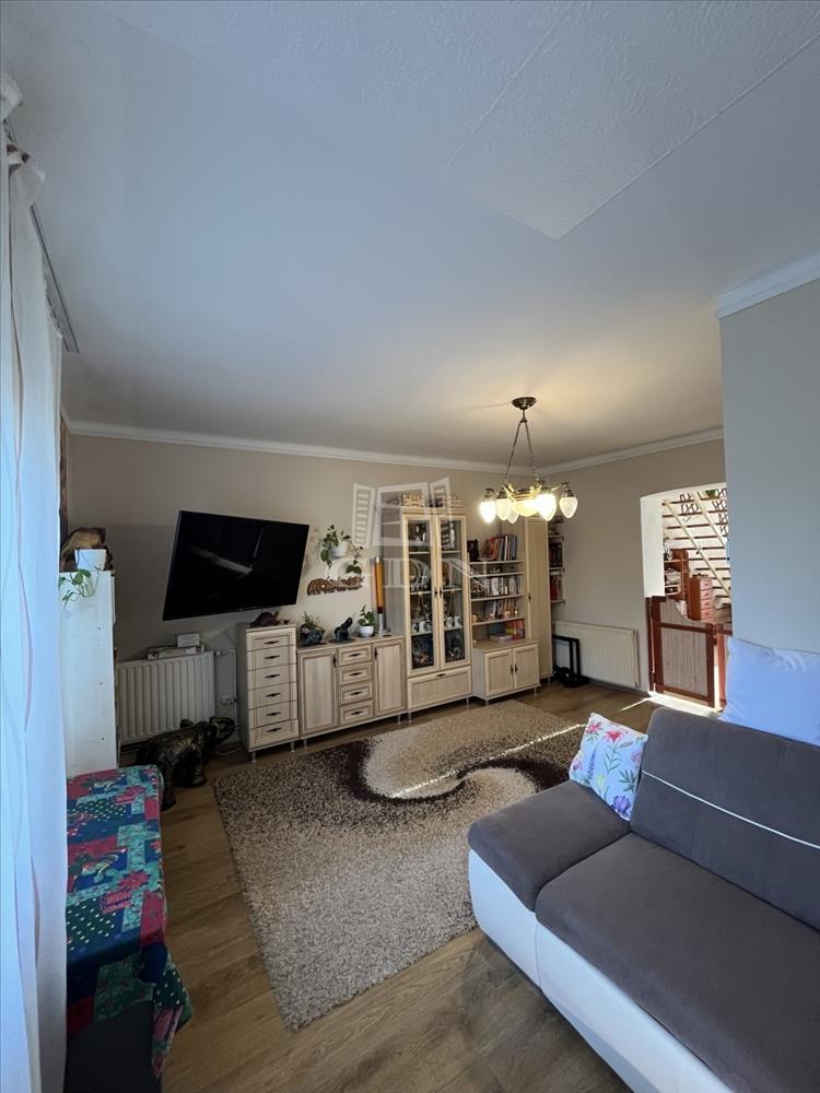 - Az alsó szinten szinte minden igényt kielégítő nagyságú terek találhatók, egy hatalmas nappali, napfényes konyha étkezővel, fürdő, illetve Wc
