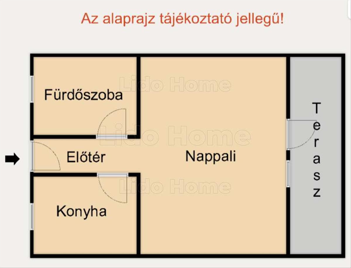 -Helyiségek: nappali, konyha, fürdőszoba, előtér, terasz.