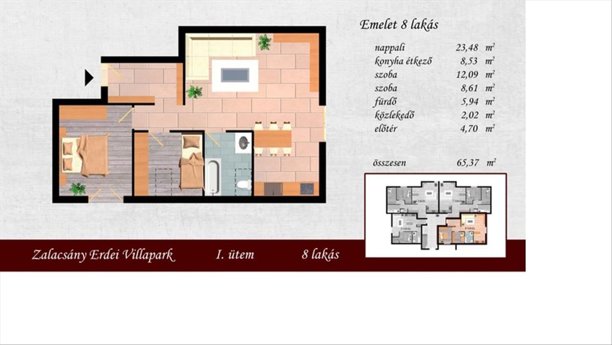 Zalacsánynak. Ebben a kellemes zöldövezeti részében 2021- ben épült társasházi lakást kínálok megvételre, vagy üdülési jog megvásárlása is lehetséges.