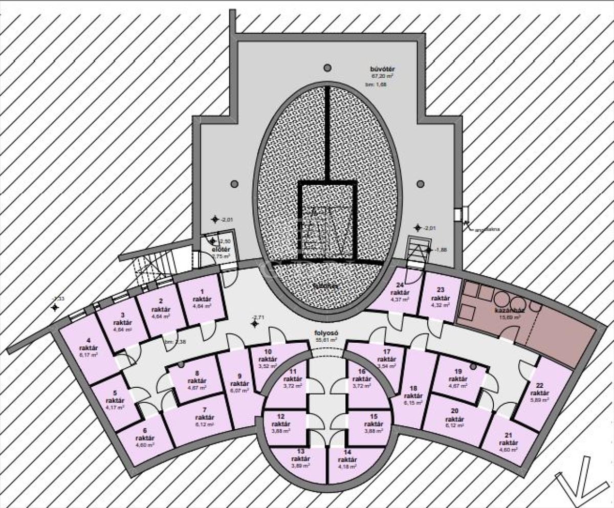 A ház alagsorában különféle méretű tárolók (3, 8 - 6m2) kerültek kialakításra, melyek szintén megvásárolhatók.