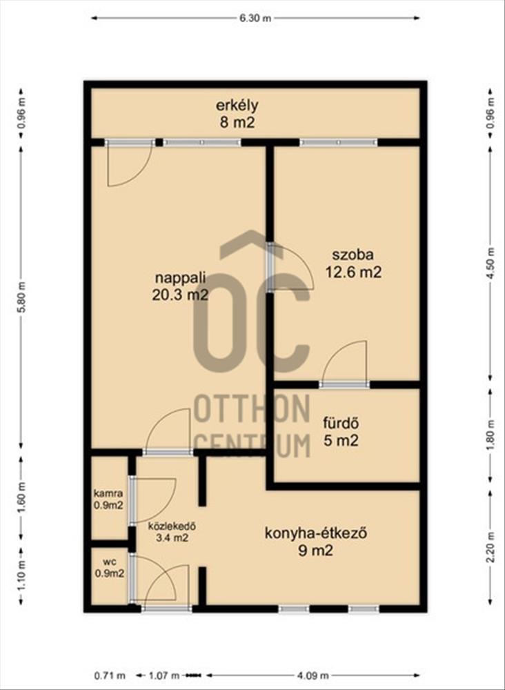 - 54 m2-es nettó alapterületű, 8 m2-es nagy erkéllyel rendelkezik.