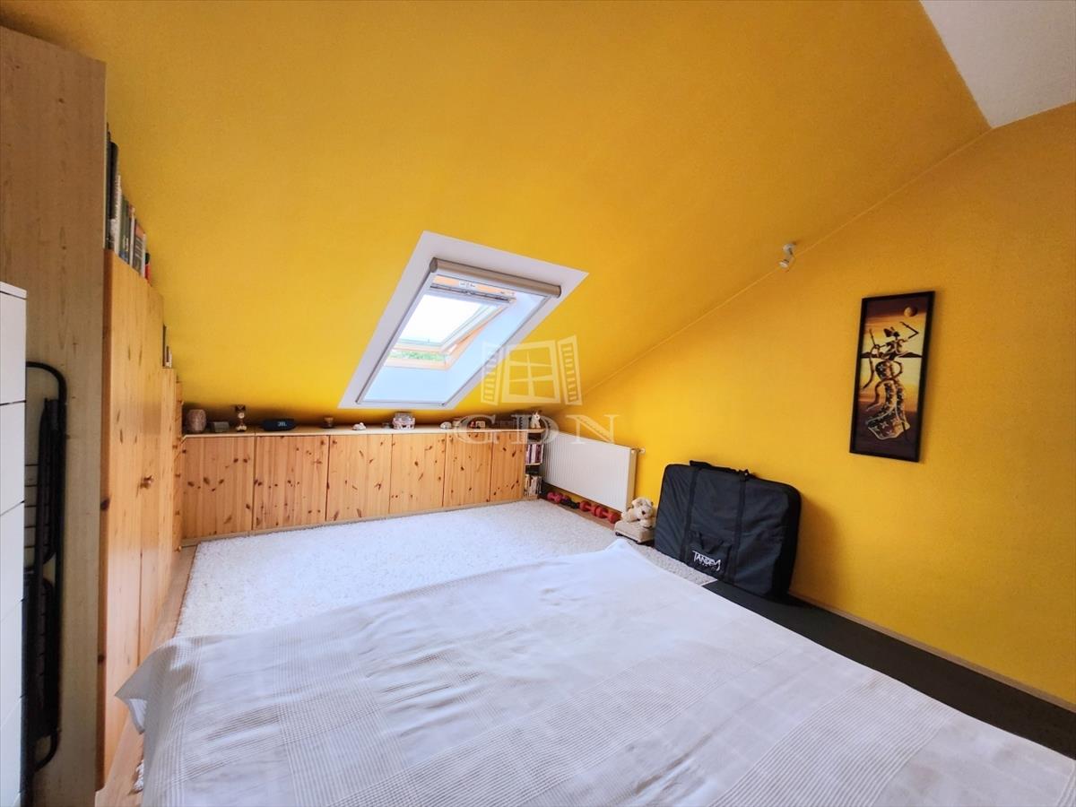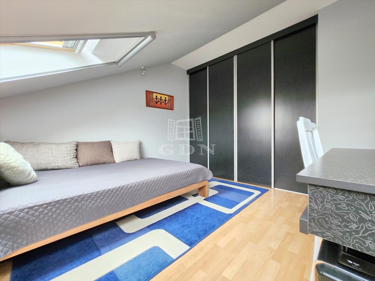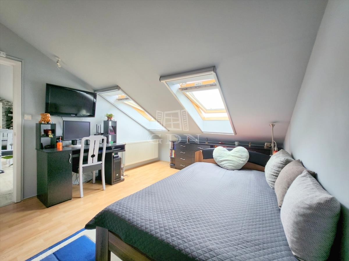 A maximális helykihasználtság érdekében a fürdőszobában, illetve a két hálóban a tetőtéri adottságokat figyelembe véve kifejezetten oda tervezett és gyártott szekrények kaptak helyet.