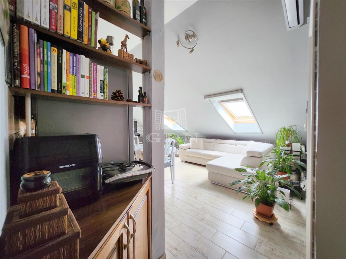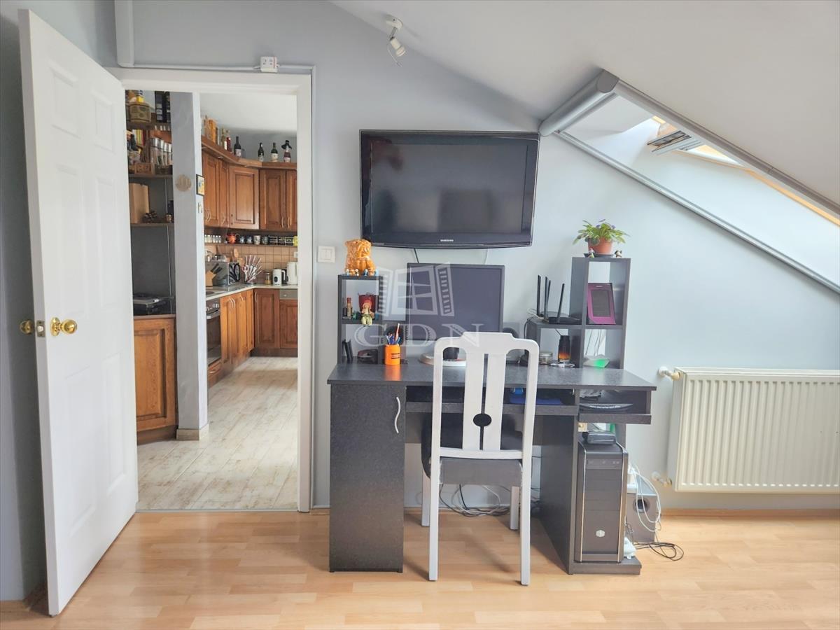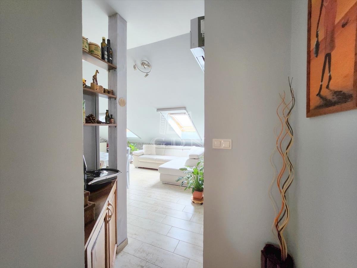 A maximális helykihasználtság érdekében a fürdőszobában, illetve a két hálóban a tetőtéri adottságokat figyelembe véve kifejezetten oda tervezett és gyártott szekrények kaptak helyet.