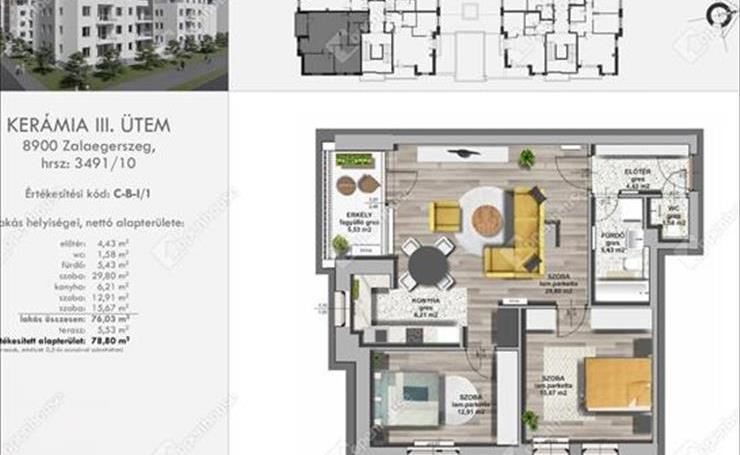 - Ennek az ingatlannak a lakótere 76 m2, melyhez 5.5 m2-es terasz (a korlát biztonsági ragasztott üveg) tartozik.