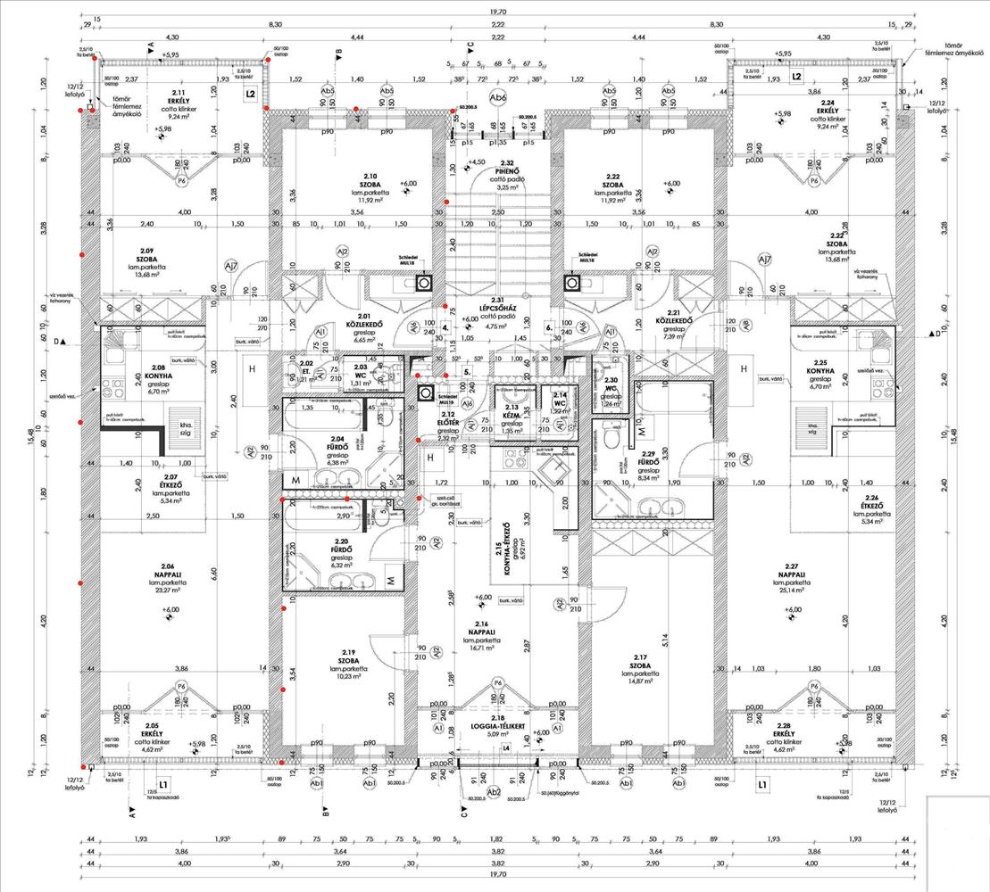 - Falazat: porotherm 30 +14 cm szigetelés. a lakásokat elválasztó falak hanggátló téglából készültek. a lakások térelválasztása válaszfaltéglából került kialakításra.
