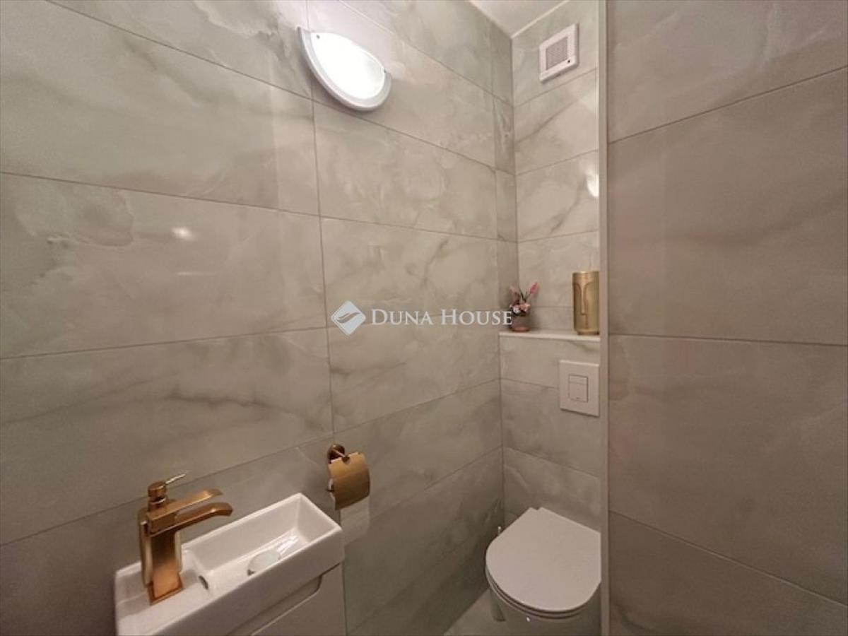 Igényesen felújított fürdőszoba, mosdó, konyha és étkező