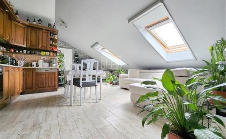 A maximális helykihasználtság érdekében a fürdőszobában, illetve a két hálóban a tetőtéri adottságokat figyelembe véve kifejezetten oda tervezett és gyártott szekrények kaptak helyet.