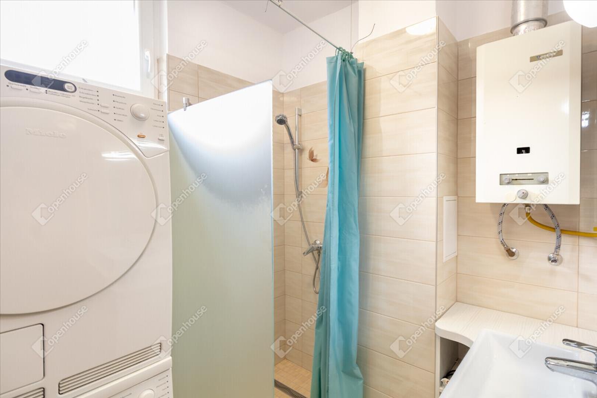 A lakás zuhanyzós fürdőszobával és külön WC-vel rendelkezik, mindkettő modern, esztétikus kivitelben készült.