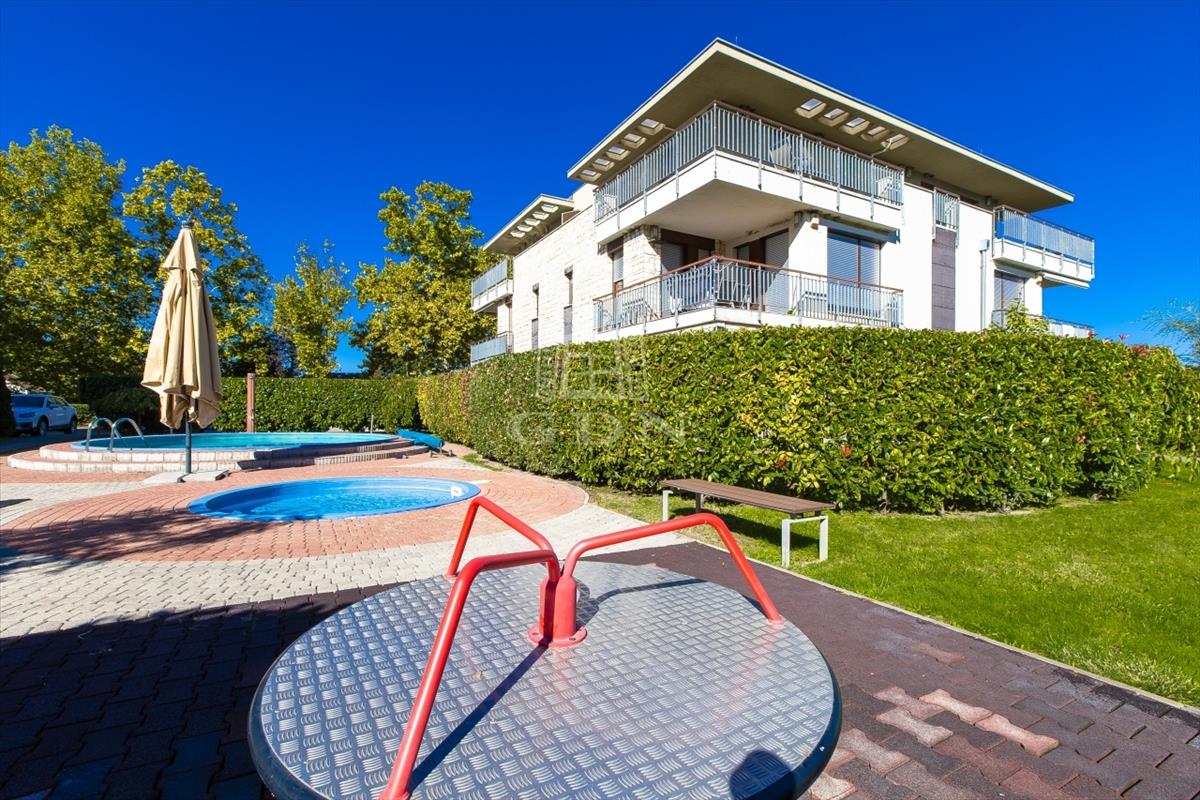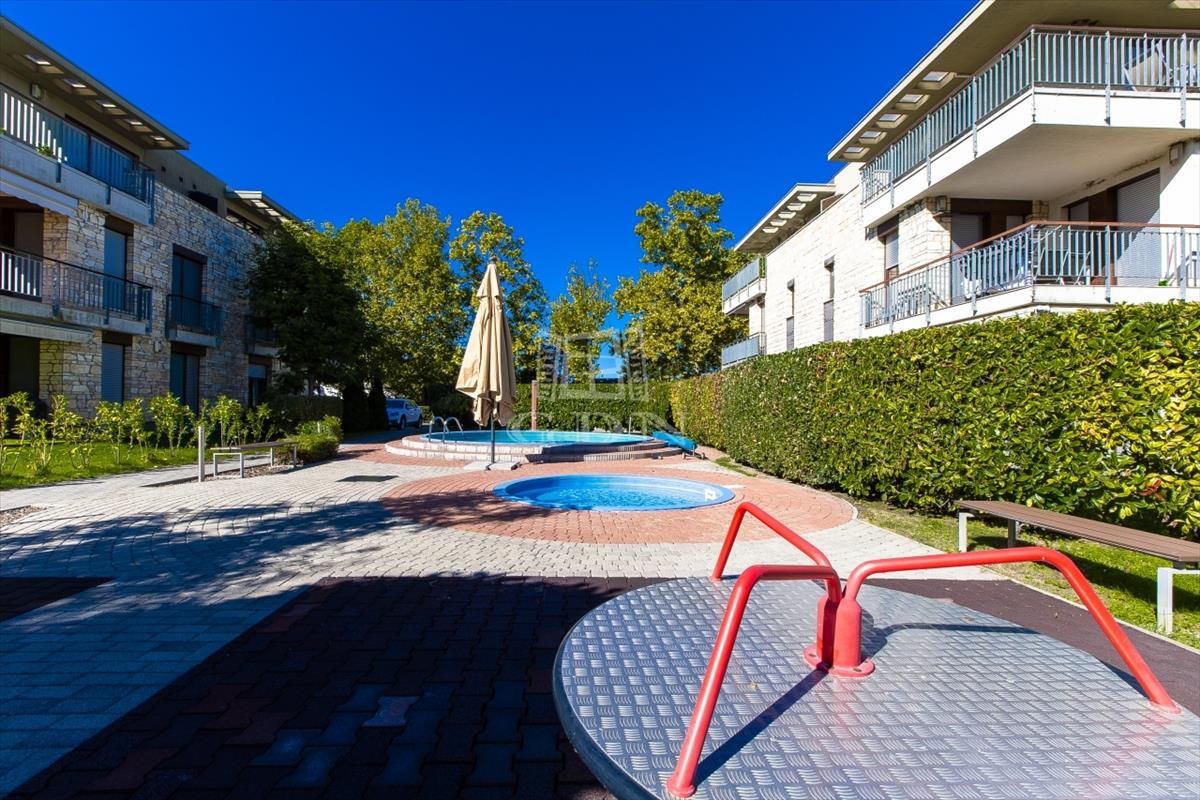 A 11 m²-es erkélyről egy pohár bor mellett élvezheted a naplementét, míg a társasházban található két kültéri medence gondoskodik a nyári felfrissülésről. Ha inkább a természetes vízre vágysz, a Balaton mindössze pár lépésnyire vár.