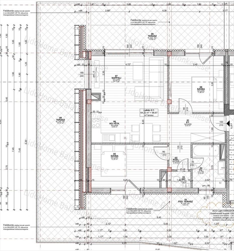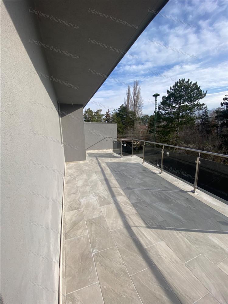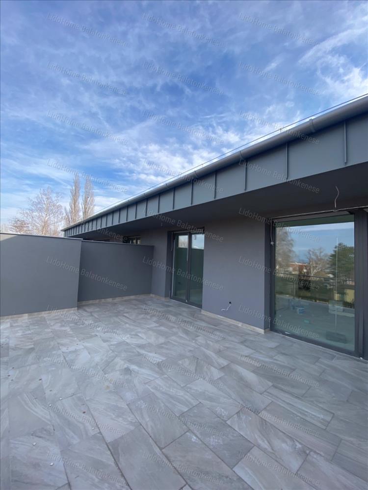 A hirdetésben szereplő penthouse lakás két szoba nappalis, lakótere 64 m2, terasza 108 m2 részpanorámával a Balatonra!