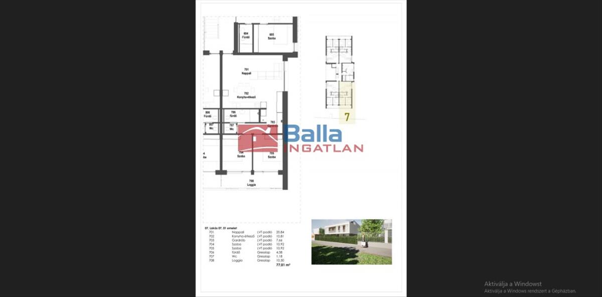 7. Lakás: 77, 01 nm 66, 71nm +10, 3nm loggia 122. 673. 990. -Ft