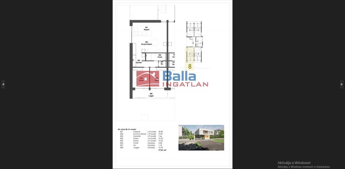 8. Lakás: 77, 01 nm 66, 71nm +10, 3nm loggia 122. 673. 990. -Ft
