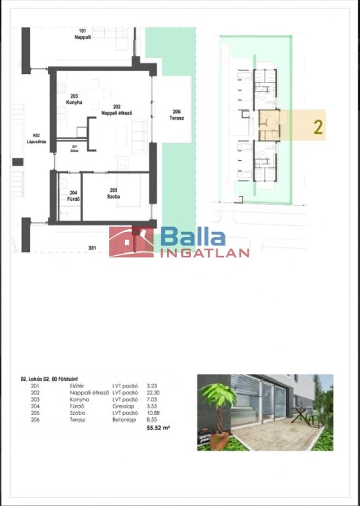 2. Lakás: 55, 52 nm 46, 97nm + 8, 55nm terasz + 27nm kertkapcsolat : 97. 076. 100. -Ft