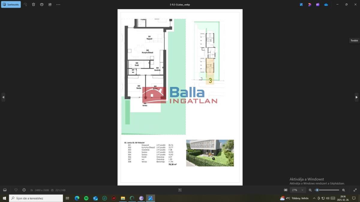 3. Lakás: 78, 28 nm 66, 71nm + 11, 57nm terasz+97nm kertkapcsolat: 143. 594. 810. -Ft