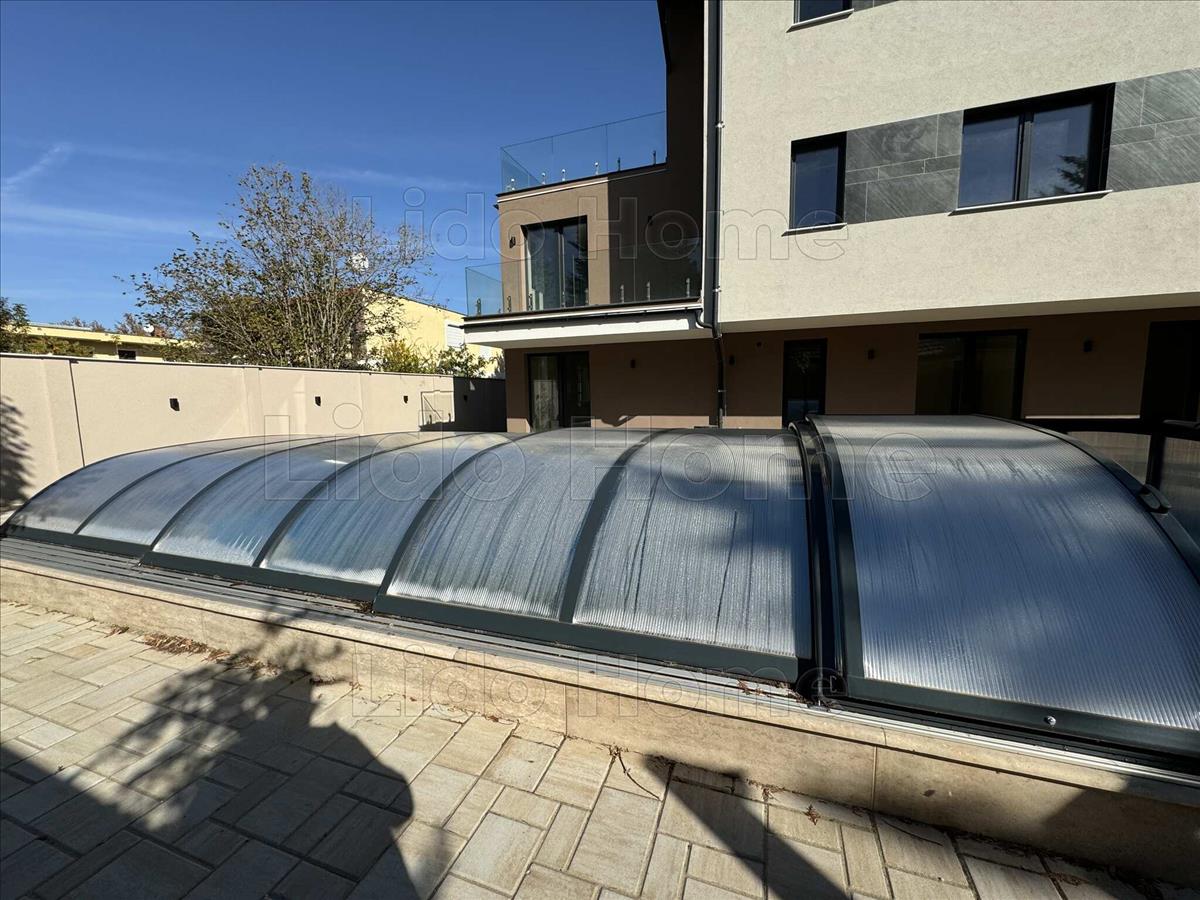 A társasház földszint plusz kétszintes, közös használatú, fűthető medencével ellátott, a medence önálló hőszivattyúról üzemel.