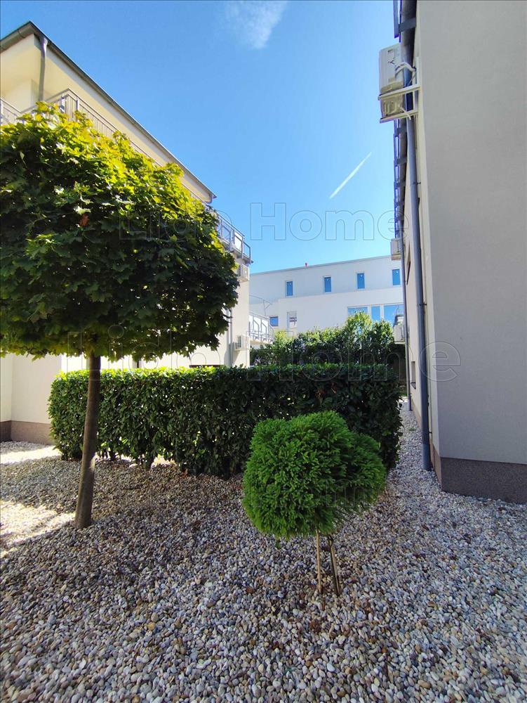 A társasház kertje gondozott, automata locsoló berendezés is telepítve.