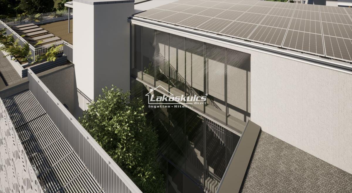 Mindegyik lakás saját, fedett autóbeállóval rendelkezik, elektromos autó töltési lehetőséggel, ezzel is kihasználva a zöld és megújuló energiaforrásokat. Tetőtéri zuhanyzós napozótér biztosítja a felhőtlen napozás élményét, ami közel 100 m2. a szuterén szinten közös tároló található, és a riasztónak köszönhetően még nagyobb biztonságban tudhatjuk vagyontárgyainkat. Az ingatlanok hűtés - fűtését és a meleg víz ellátását napelemmel ellátott hőszivattyú biztosítja. Amely amellett, hogy zöld és megújuló energiaforrás, gondoskodik a hosszútávon fenn tartható alacsony rezsiköltségekről. Minden lakáshoz saját fűtési hőmennyiség mérő tartozik. a lakás hőmérsékletét lakásonként programozható szoba termosztát szabályozza. a lakásokban padlófűtés és fan coil fűtés-hűtés készül. a napelemes energiaforrást kihasználva működik a lift és a közös fogyasztók is, hogy minél kevesebb elektromos áramot használjunk. a mai világ modern igényeihez mérten elektromos alumínium redőnyökkel és elektromos kapuval felszerelt, amelyeket távirányítóval vezérelhetünk.