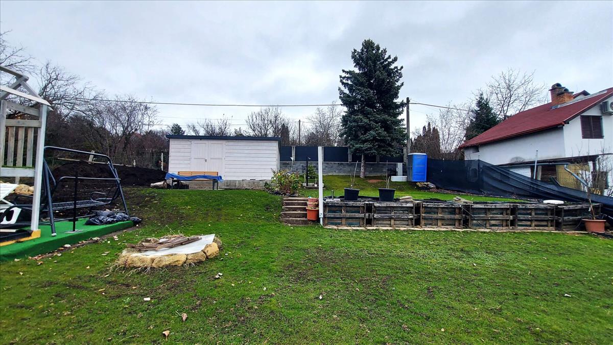 Az ingatlan különlegessége, hogy a telken van egy 50 m2-es faház, amely beton alapon fekszik.