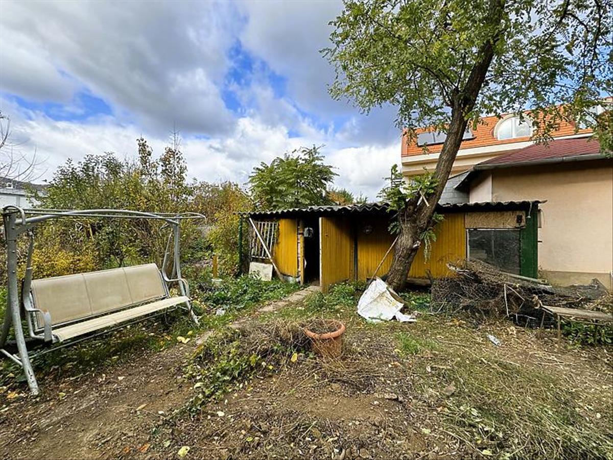 A telken jelenleg két különálló épület és egy dupla beállós garázs található, amely felújítást igényel, de akár bontás után az új építkezéshez is jó alapot nyújthat.