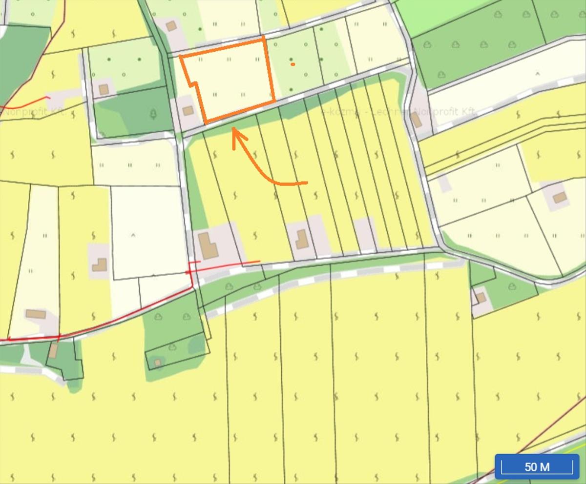 ~ 2673 m2, zártkerti művelés alól kivett terület a tulajdoni lap szerint