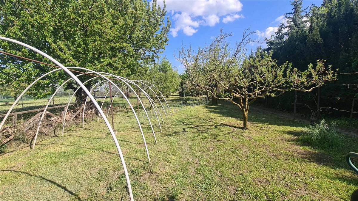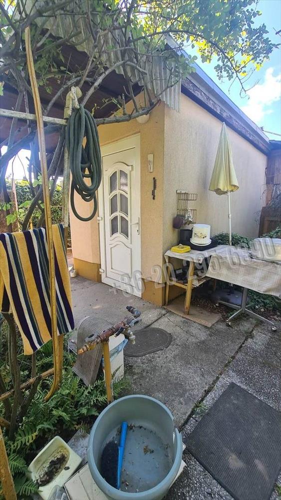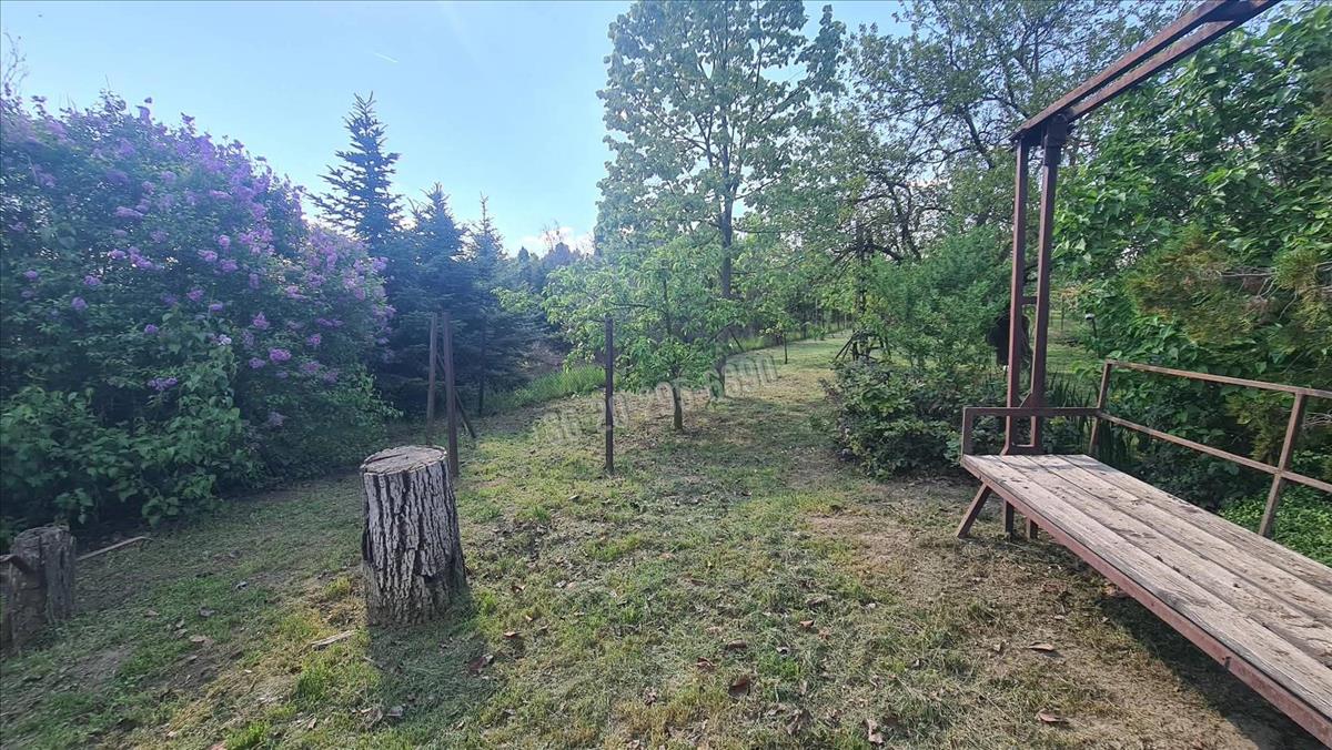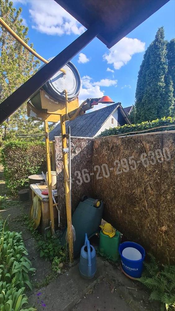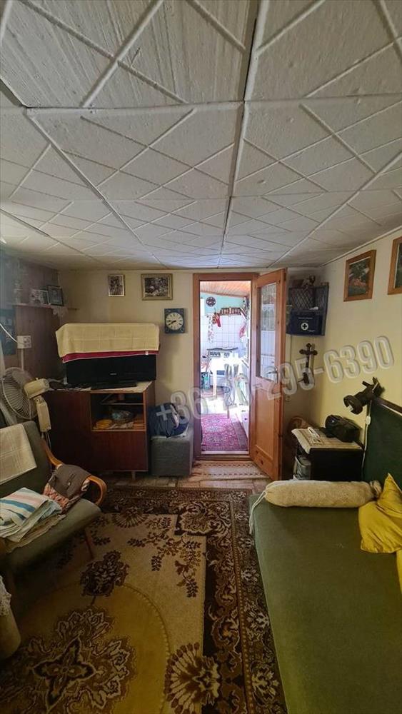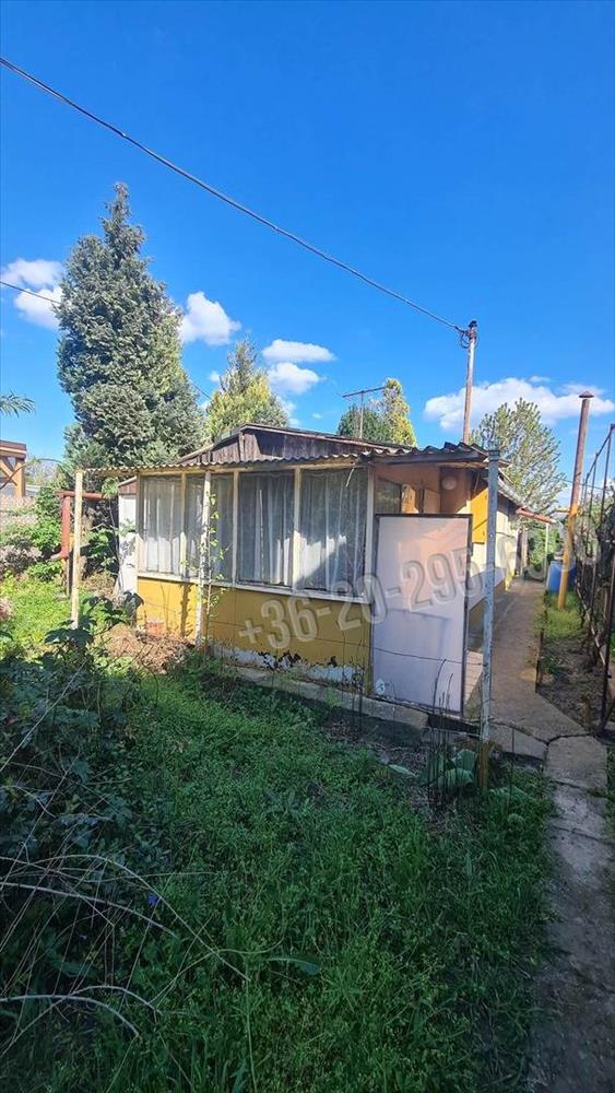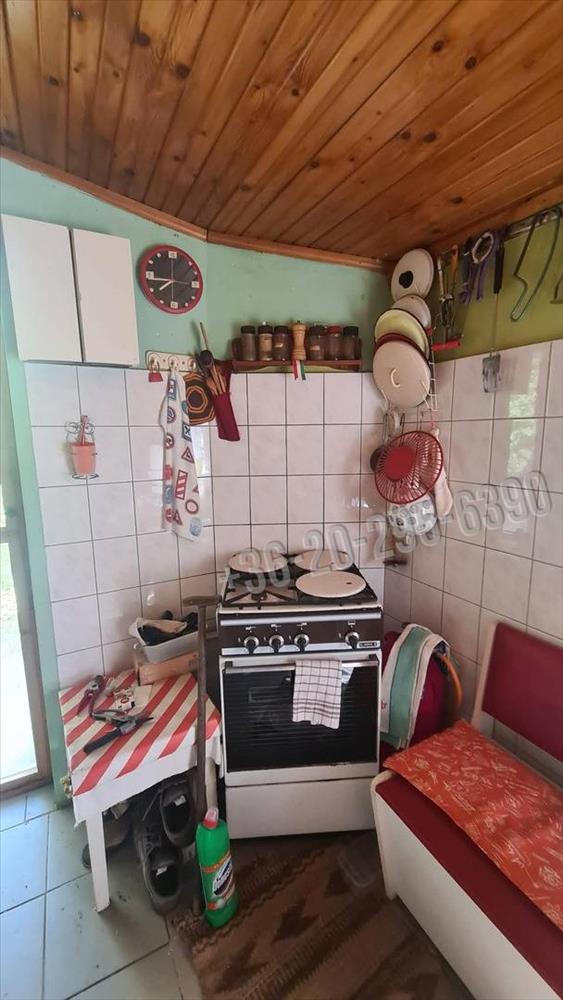 A telken áll egy kis házikó, amiben egy szoba, konyha van.