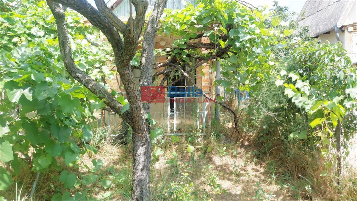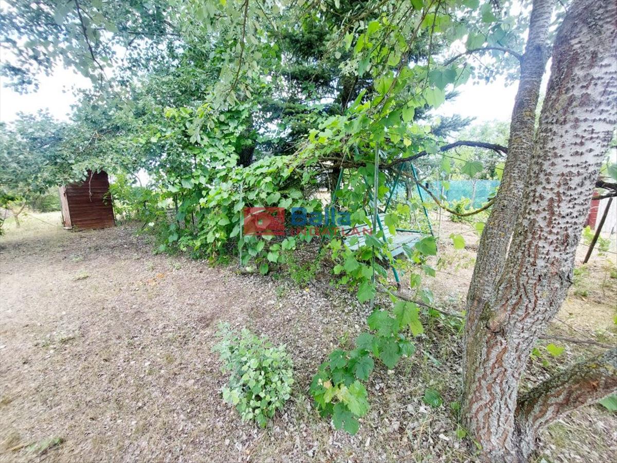 A telek 12m széles, első része körbekerített, részben szőlővel borított. a hátsó területen gyümölcsfákat és egy kevés akácost találunk.