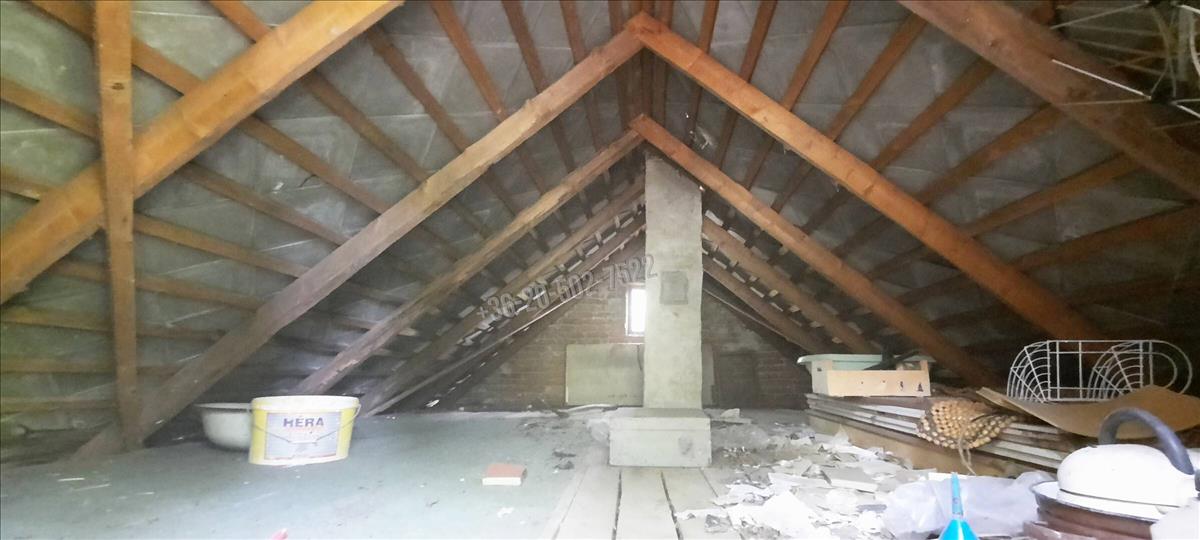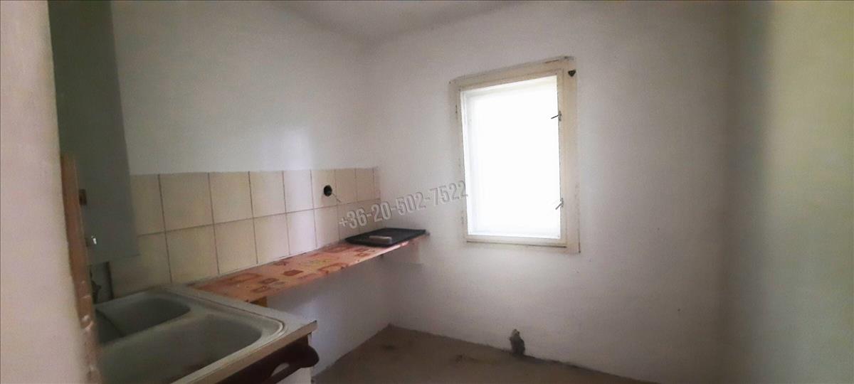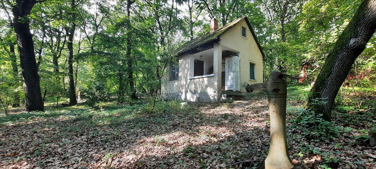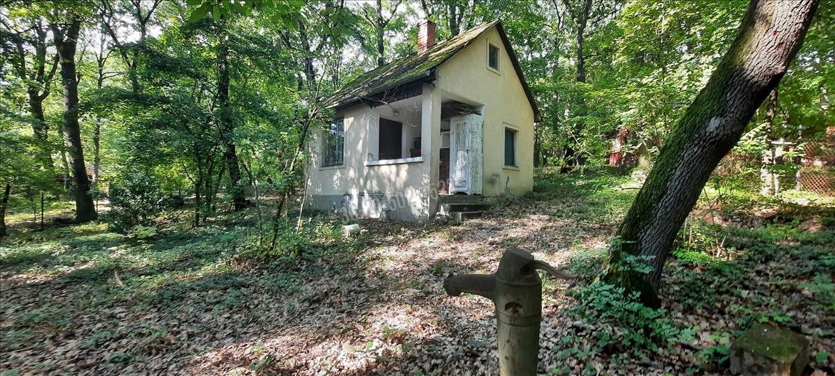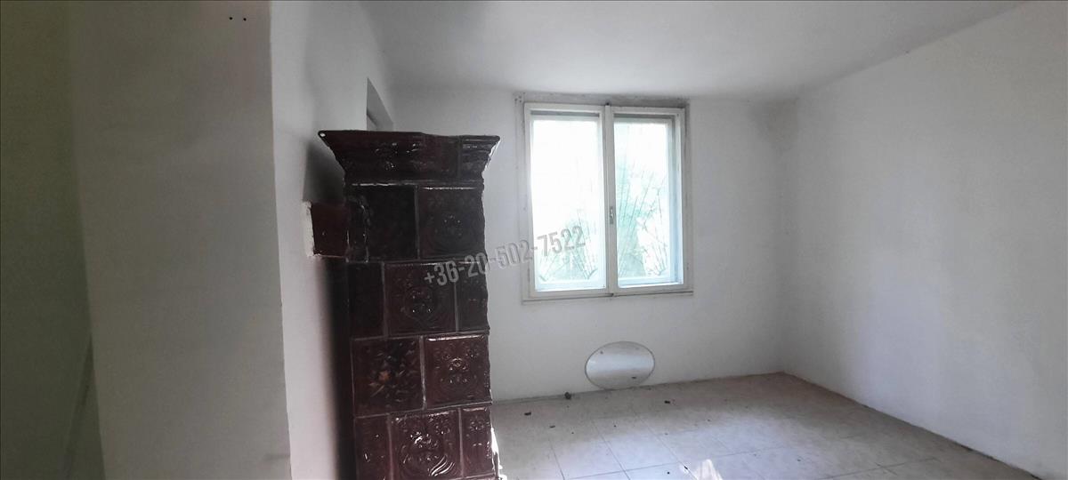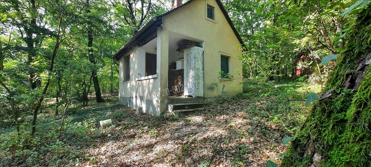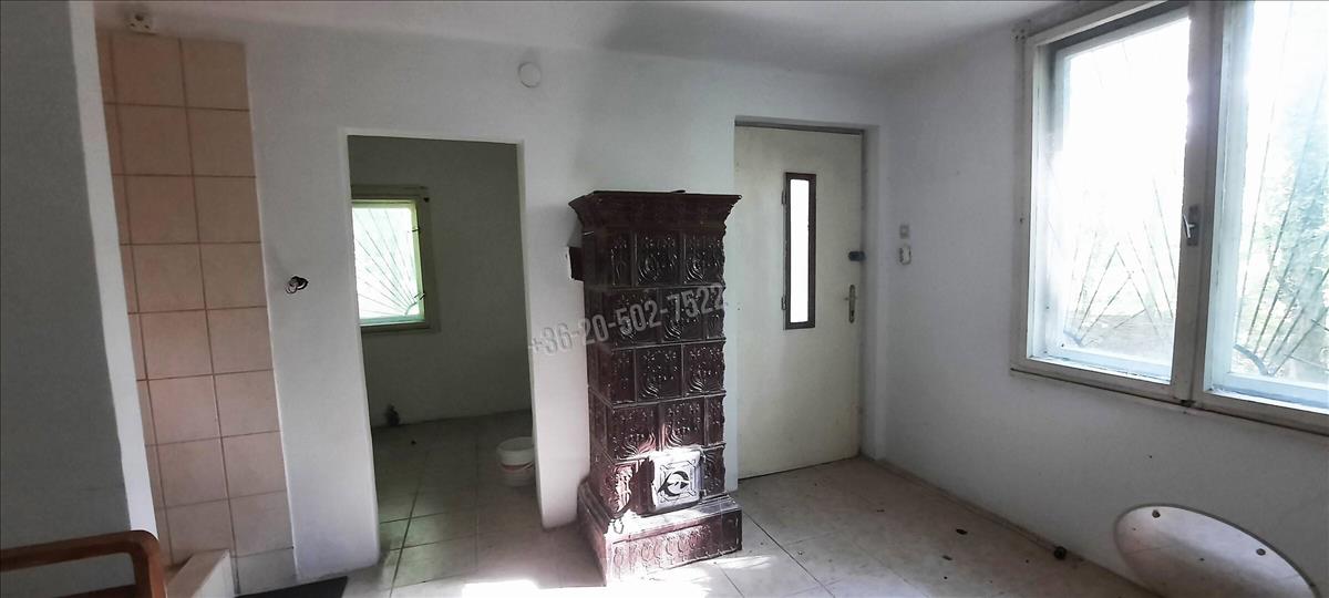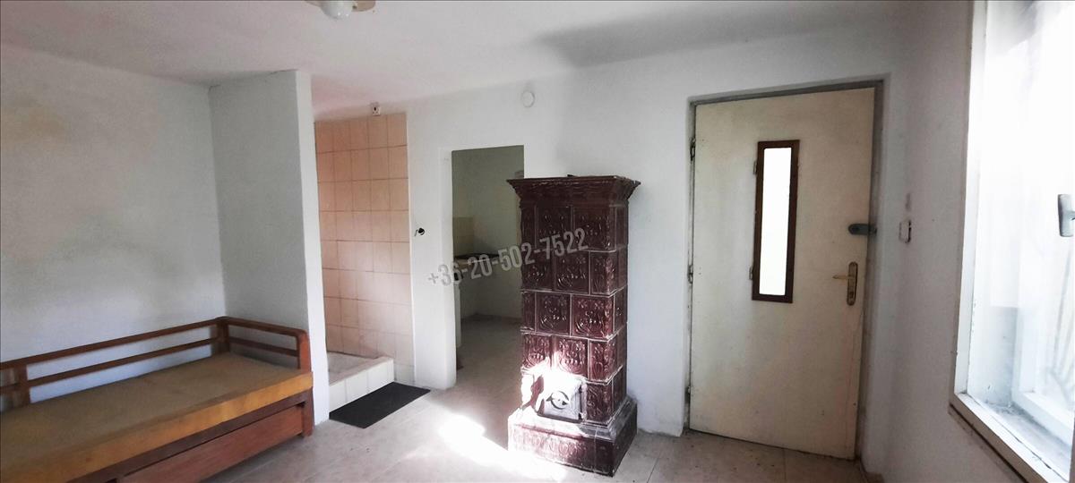 A kivett hétvégi ház bővíthető akár 134 nm-re, momentán a területe 18 nm, plusz 4 nm fedett terasz. Benne egy szoba, konyha, zuhany; közművek közül a vezetékes víz bevezetésre került, az áram a telken belül van. a felújítandó ház fűtése hangulatos cserépkályhával megoldott.