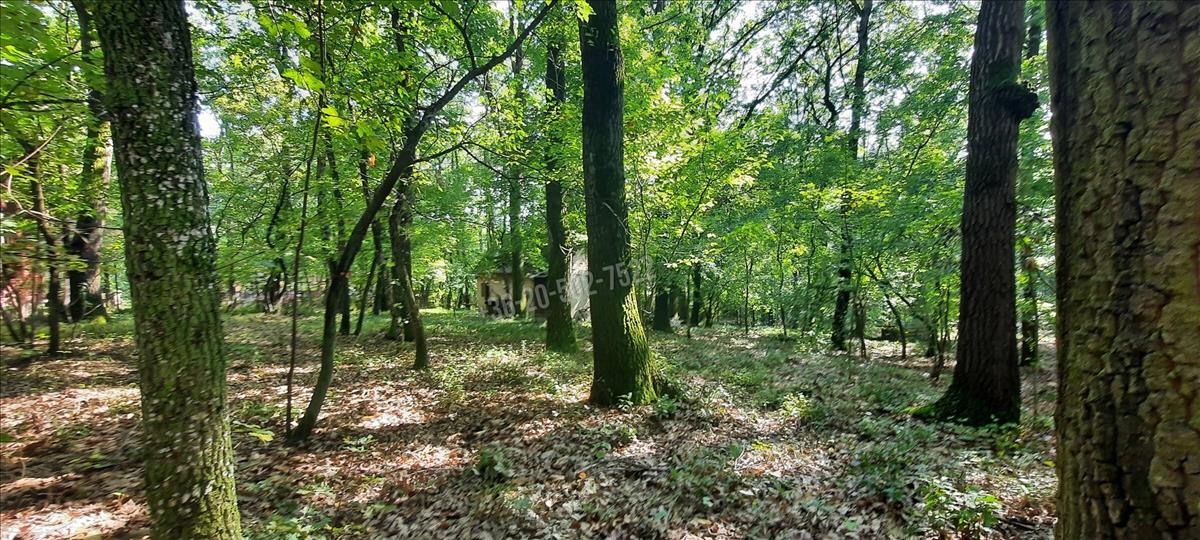Az erdő közepén álló telek szinte teljesen sík, néhol kedélyesen lejtős; két hosszabbik oldaláról kerített.
