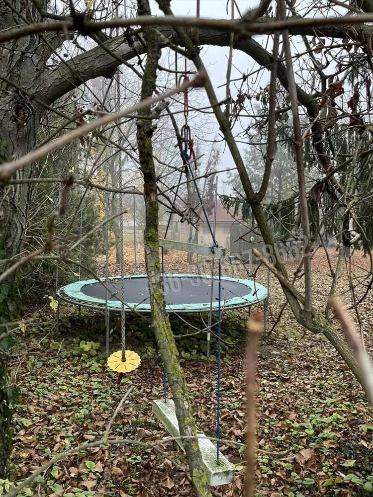 A telek gondozott és füvesített kert fákkal, bokrokkal, tujákkal, a gyep jól karbantartott. Beton alapú vaskerítéssel elkerített.