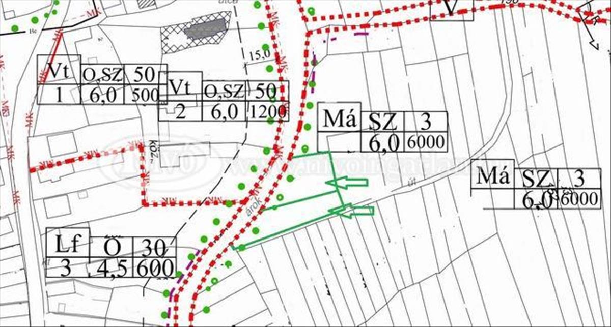 Az egyik ingatlan 537 m2, a másik pedig 518 m2. Információink szerint, az ingatlanok má (mezőgazdasági termelési terület, a képek között szerepel a területre vonatkozó hész) övezeti besorolásba esnek, tulajdoni lap szerint: kivett beépítetlen terület megnevezésűek.