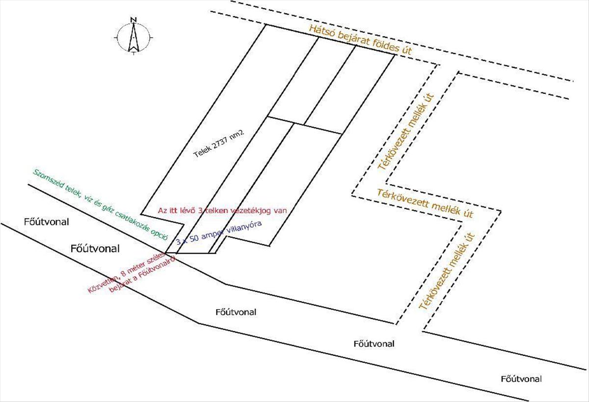 A telek közvetlen aszfaltos utcai bejárattal rendelkezik, amely megkönnyíti az ingatlan megközelítését. Az elektromos áramellátás saját villanyórával biztosított, így azonnal használatba vehető. Továbbá, a szomszédos telekről vezetékes víz és földgáz csatlakozási opció is elérhető, ami további kényelmet és sokoldalúságot nyújt az ingatlan hasznosításához.
